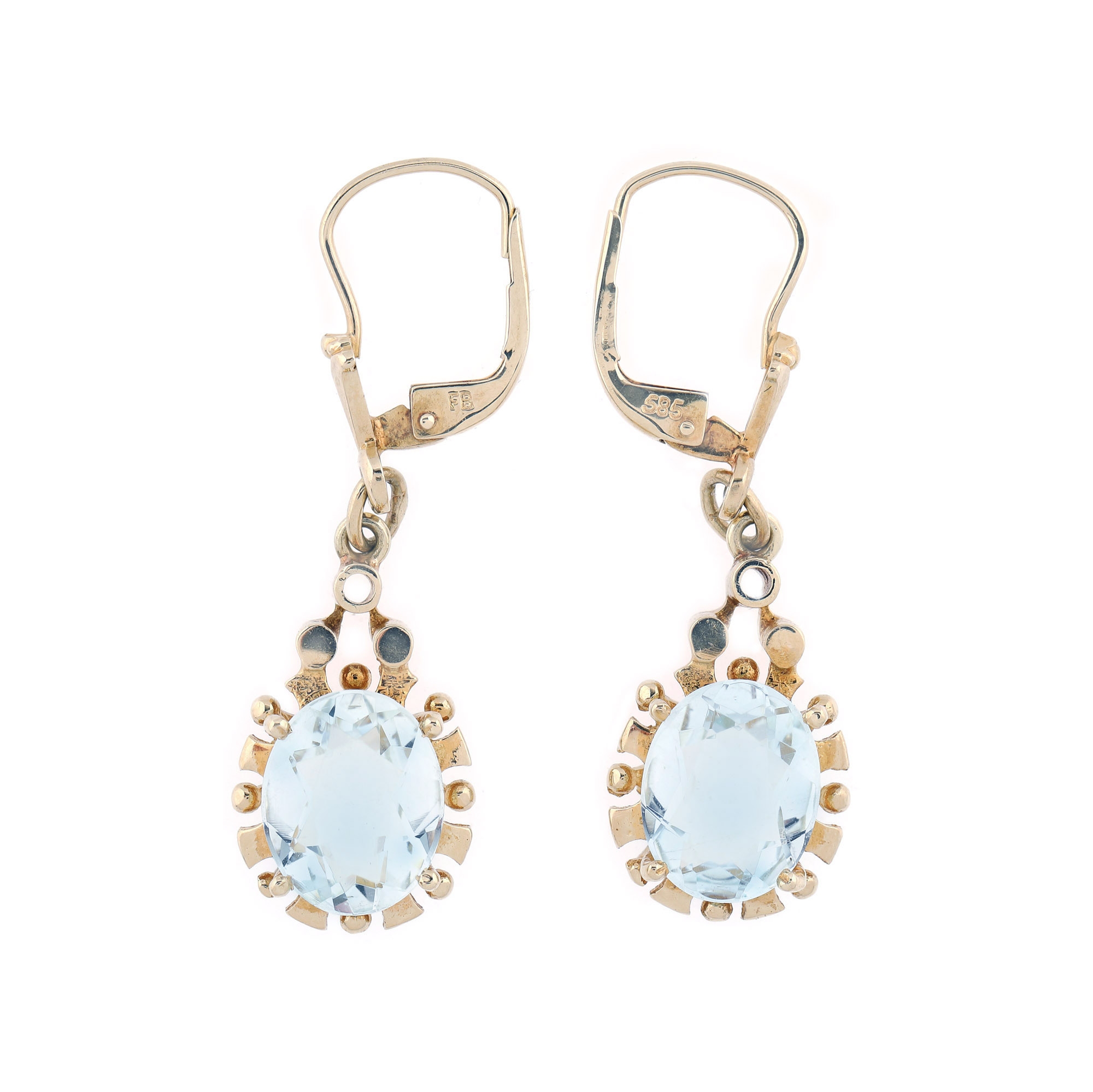 51. Pereche de cercei din aur, decorată cu acvamarine