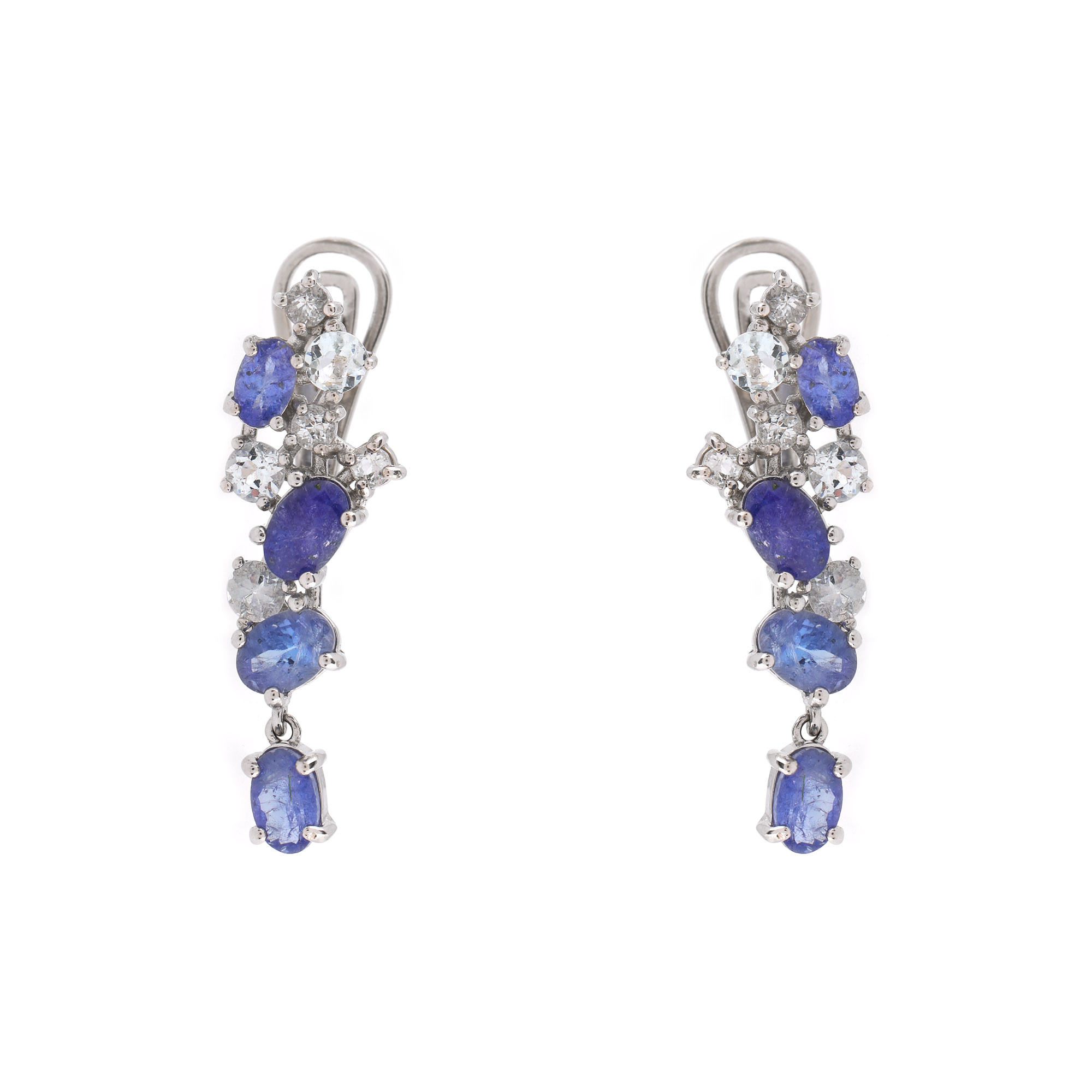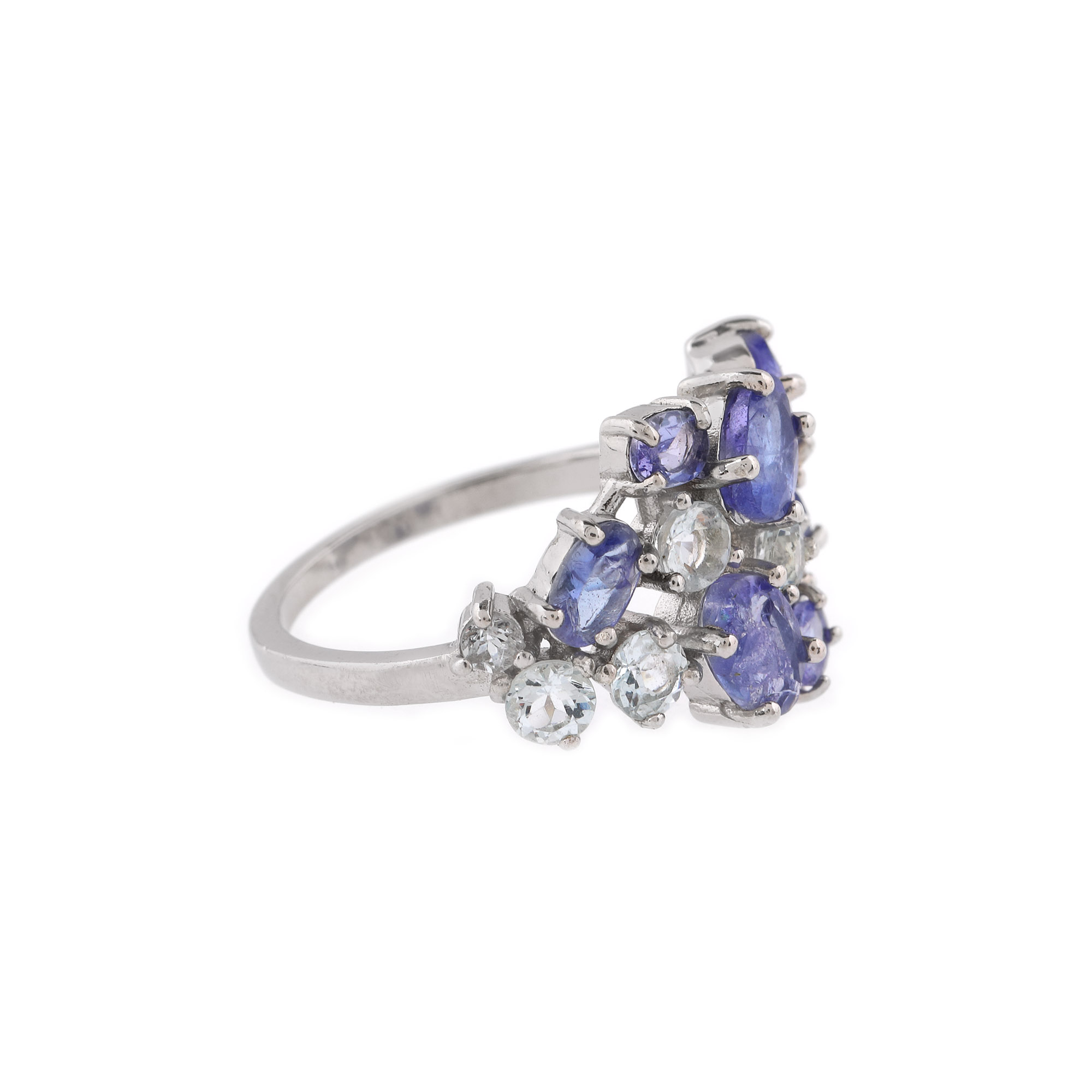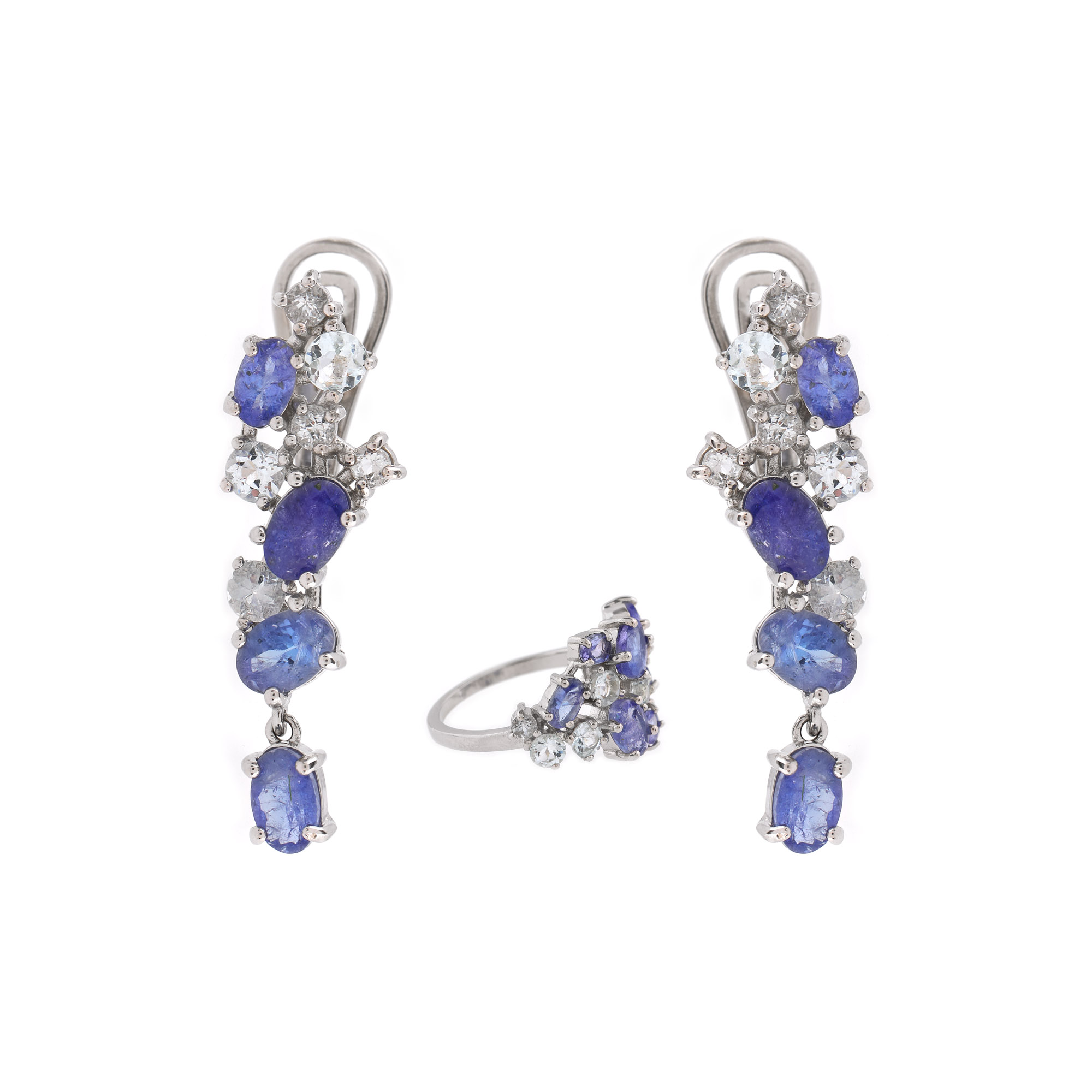 148. Set din argint, format din inel și pereche de cercei, decorat cu tanzanite și acvamarine