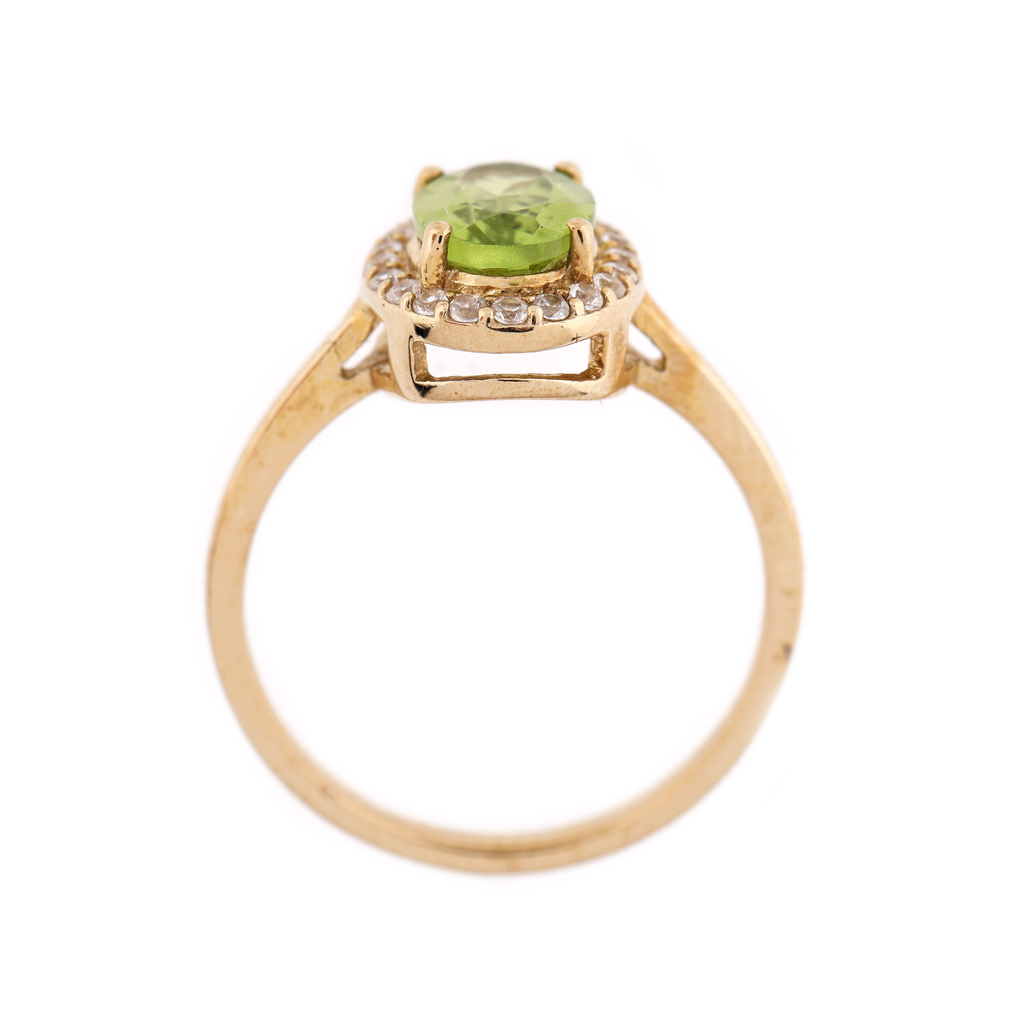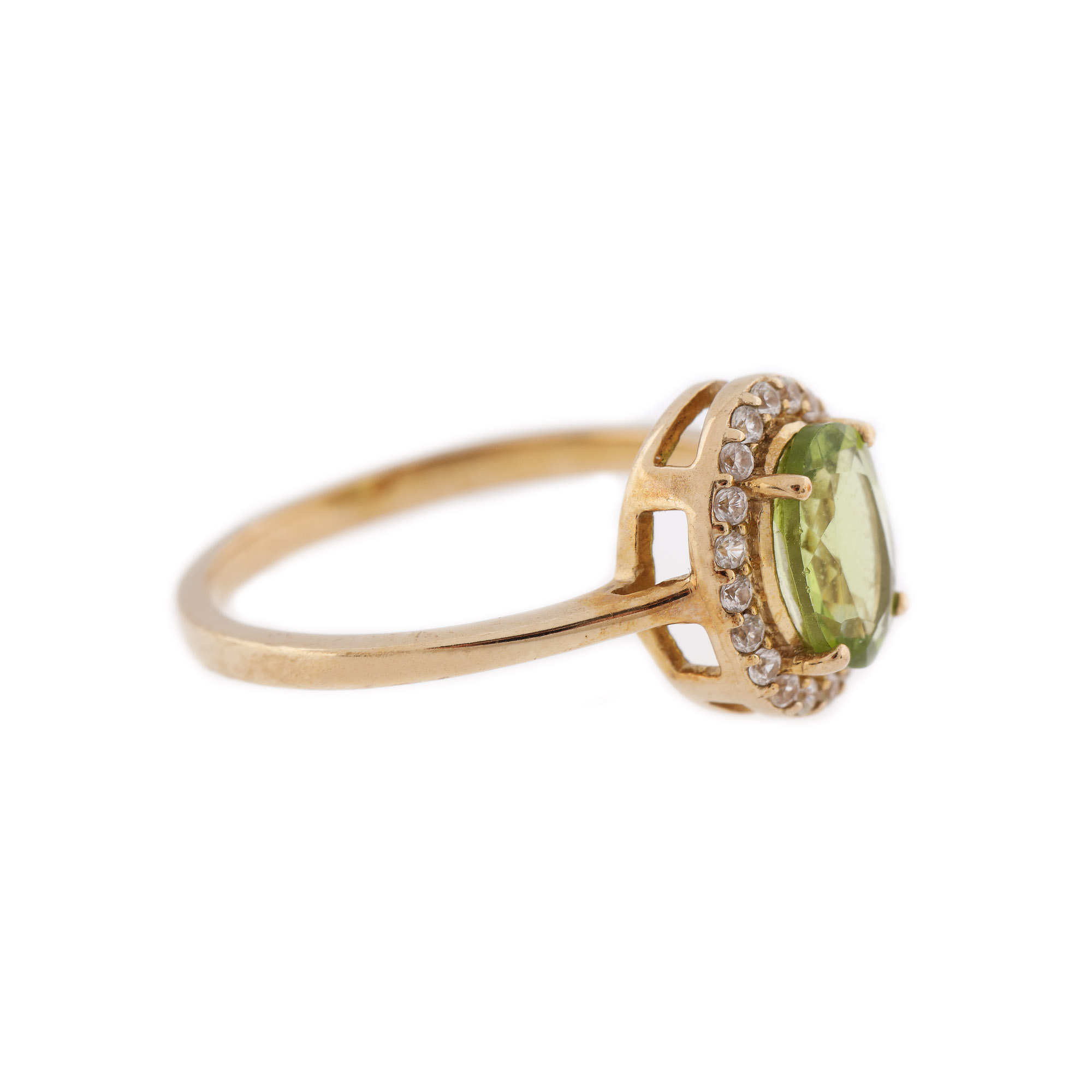 113. Set din aur, format din lanț cu pandantiv și inel, decorat cu peridote și topaze albe