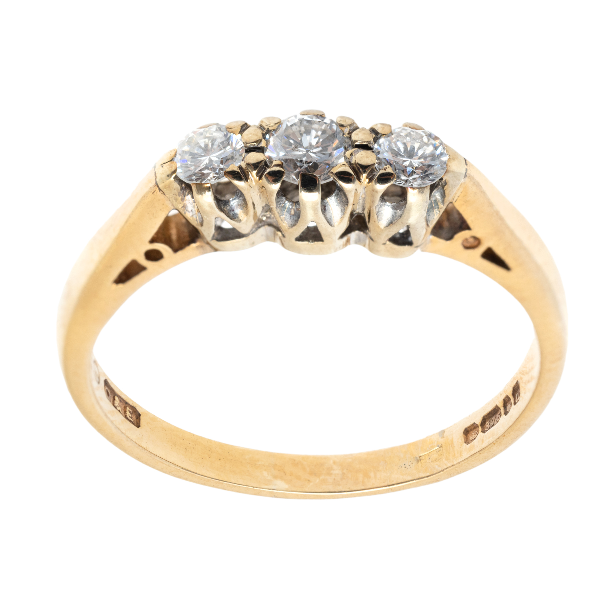 34. Inel din aur, decorat cu trei diamante