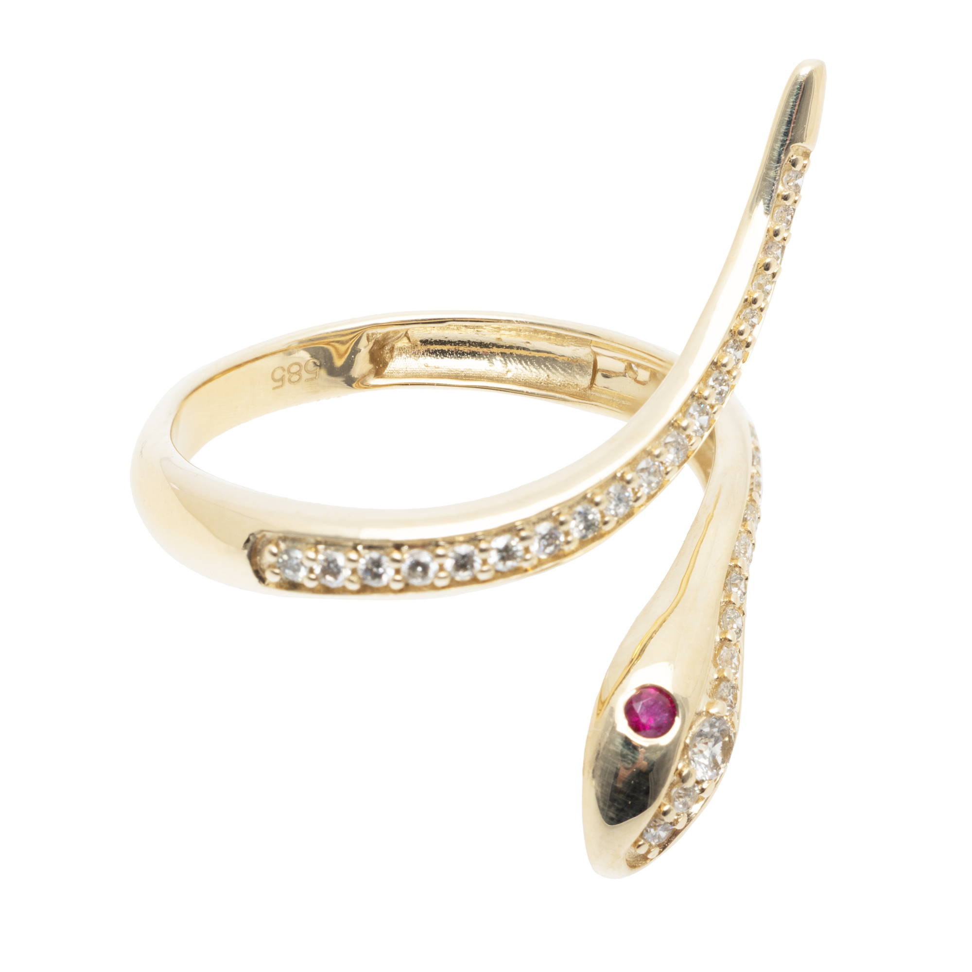 26. Inel din aur, sub formă de șarpe, decorat cu două rubine și diamante