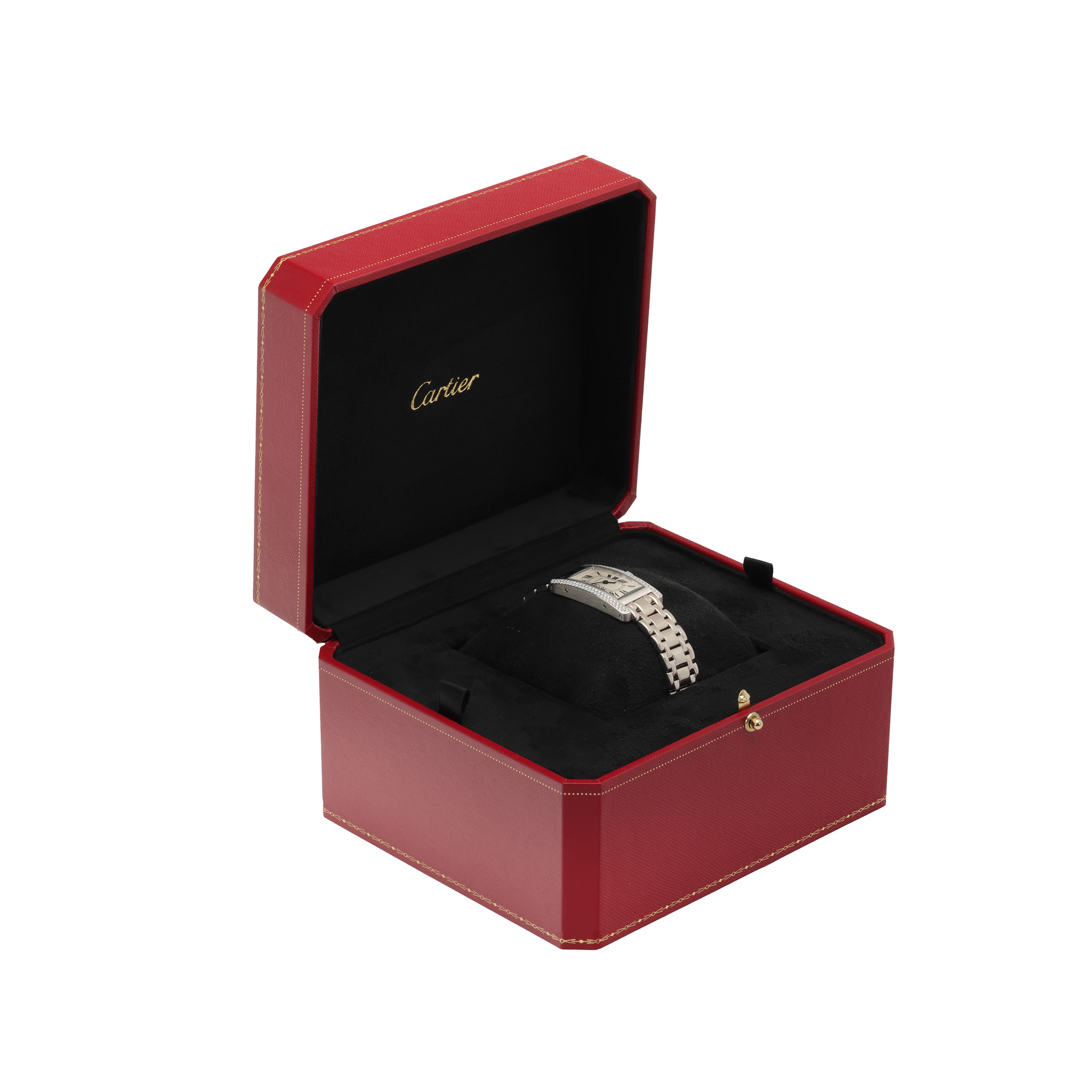13. Ceas Cartier Tank Americaine, din aur alb, cu diamante, de mână, de damă, însoțit de cutia originală [Cca. 2019]