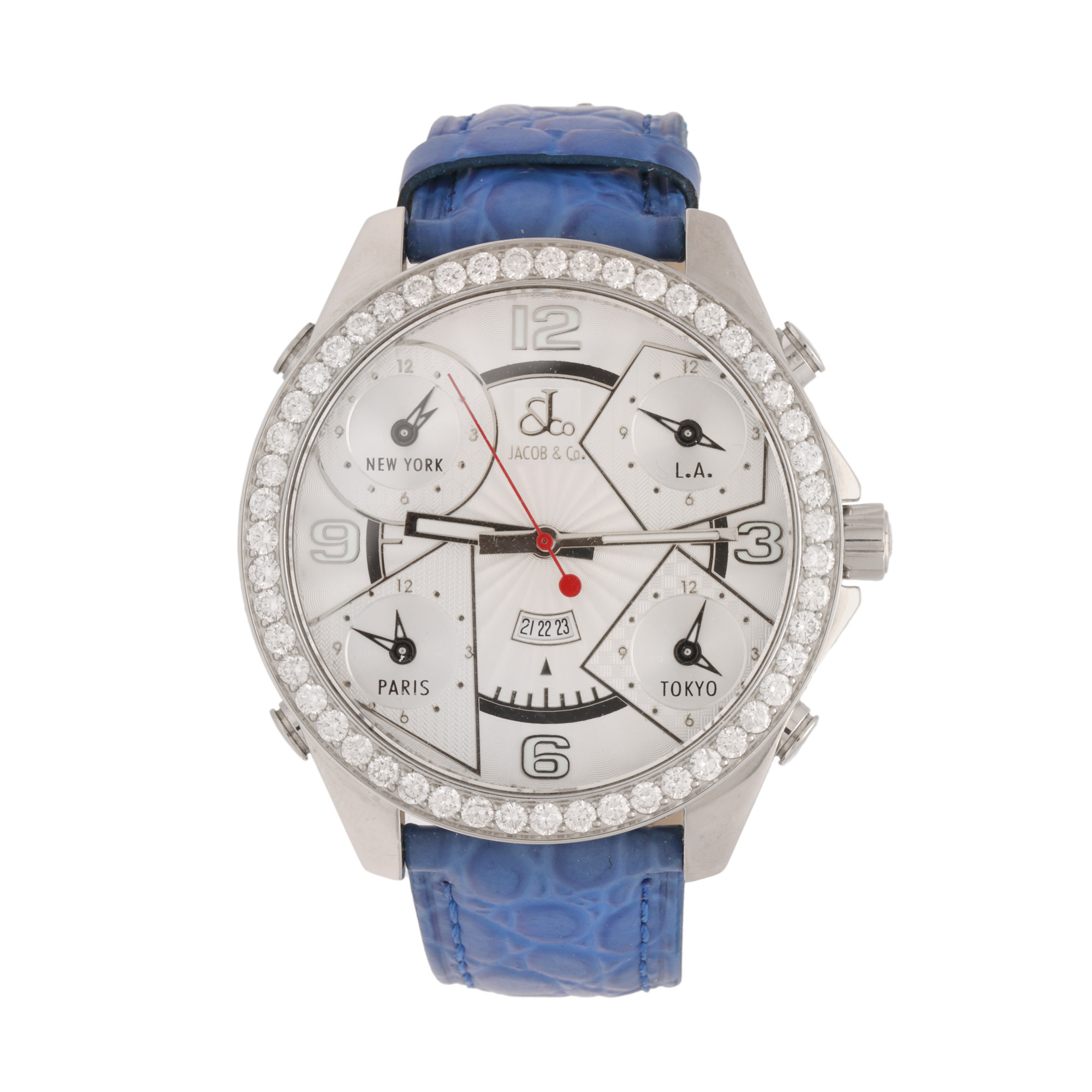 72. Ceas Jacob&co, Five Time Zone, din oțel cu diamante, de mână, unisex [2008]