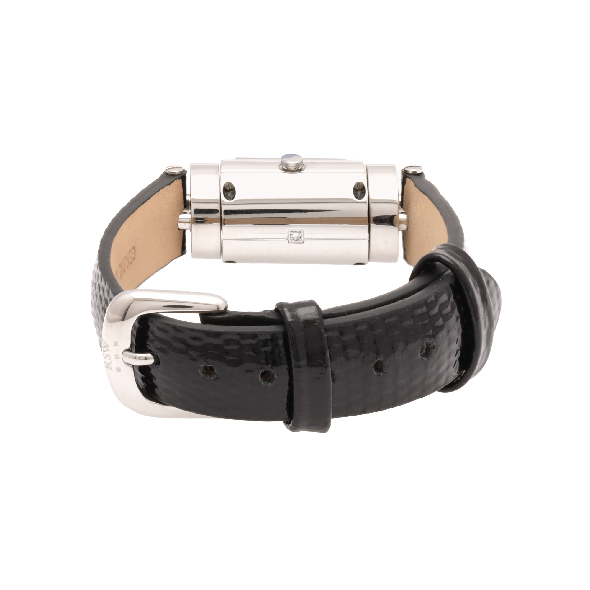 Ceas RSW Lady Liberty Flower, nou, cu diamante, de mână, de damă. Mecanism quartz. Cadran cilindric, de culoare neagră, indici diamante, indicatori orari din argint. Curea originală, din piele, de culoare neagră, cu sistem de închidere clasic cu cataramă. Accesorii: cutia originală, certificat de garanție și certificat de autenticitate pentru diamante.