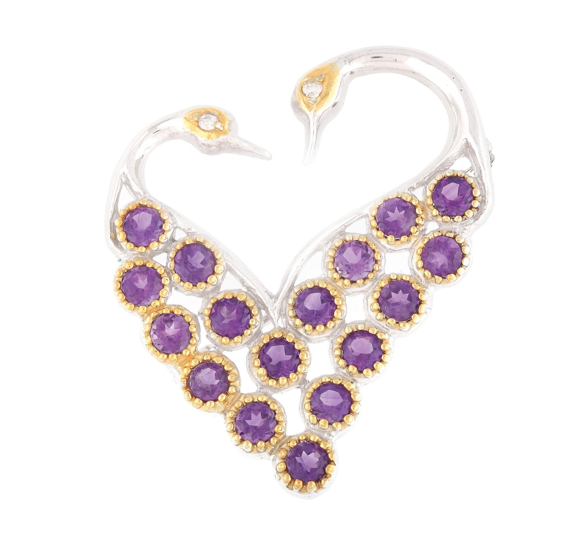 42. ”Heart of love” - broșă din argint aurit, decorată cu diamante și ametiste