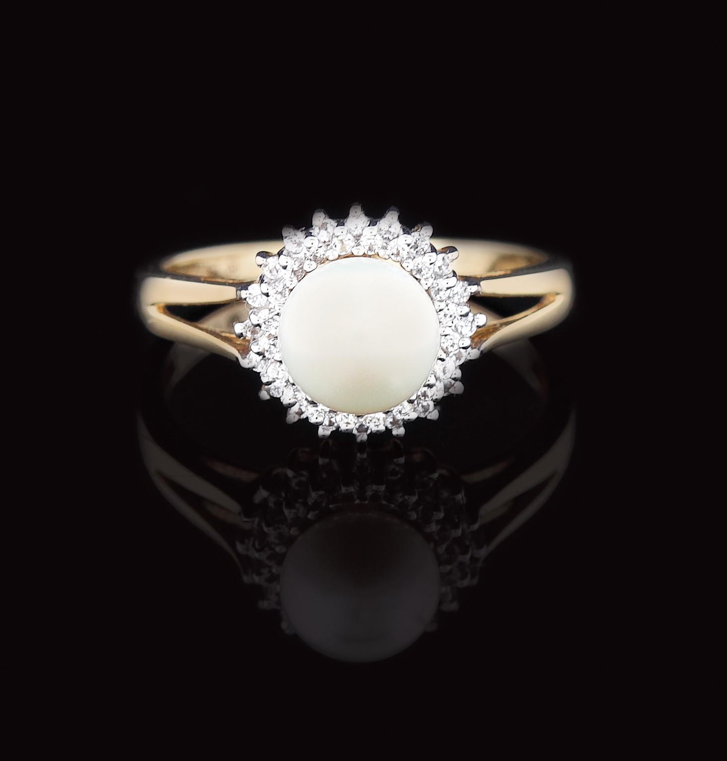 59. Inel din aur, decorat cu perlă în anturaj de safire albe