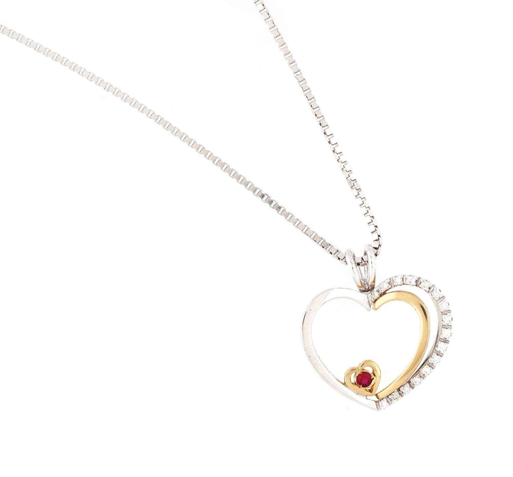 lanț: aur alb 14 k și inima: aur alb 18 k rodinat