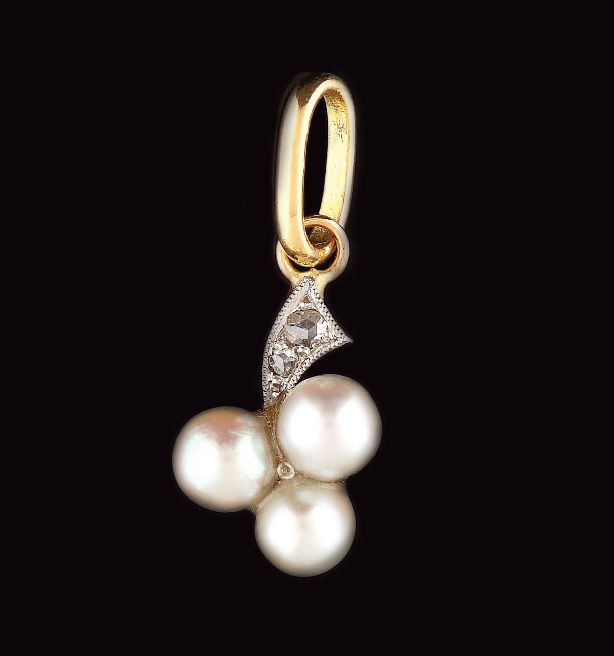 55. Pandantiv Art Nouveau din aur, decorat cu diamante și perle, cca. 1910