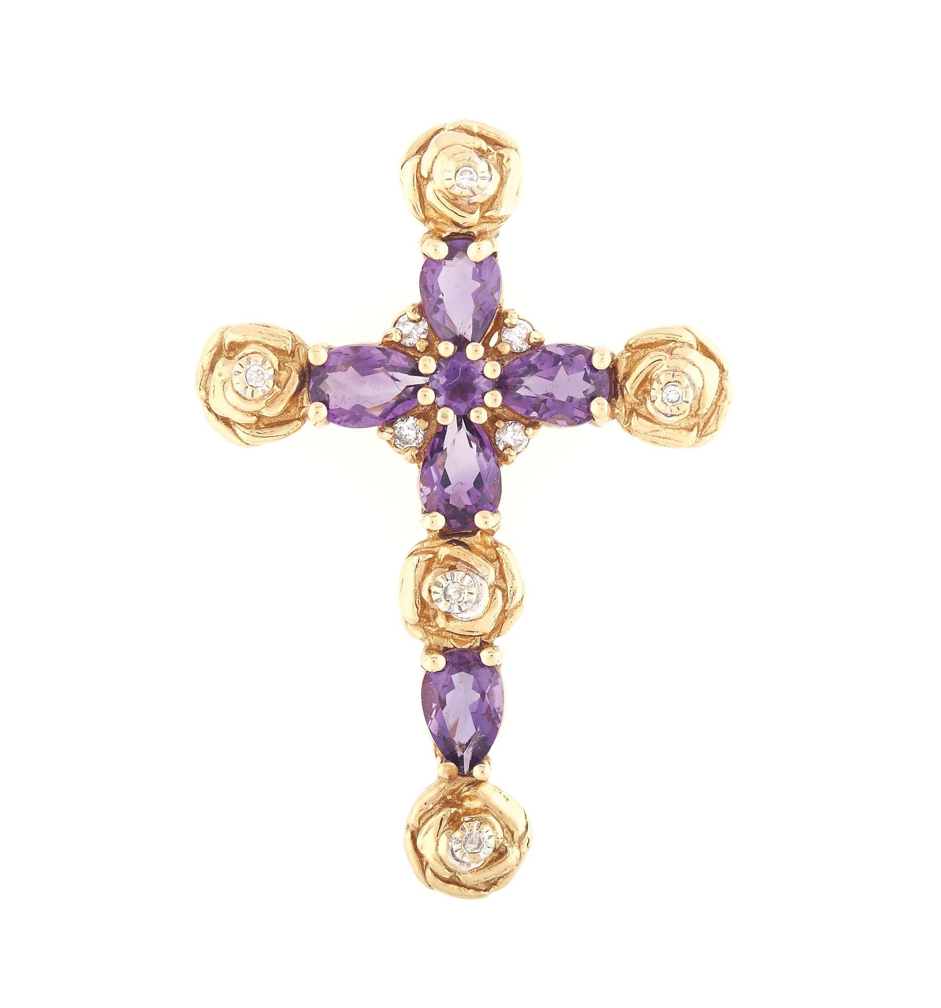 40. Pandantiv-cruce din aur, decorat cu ametiste și diamante