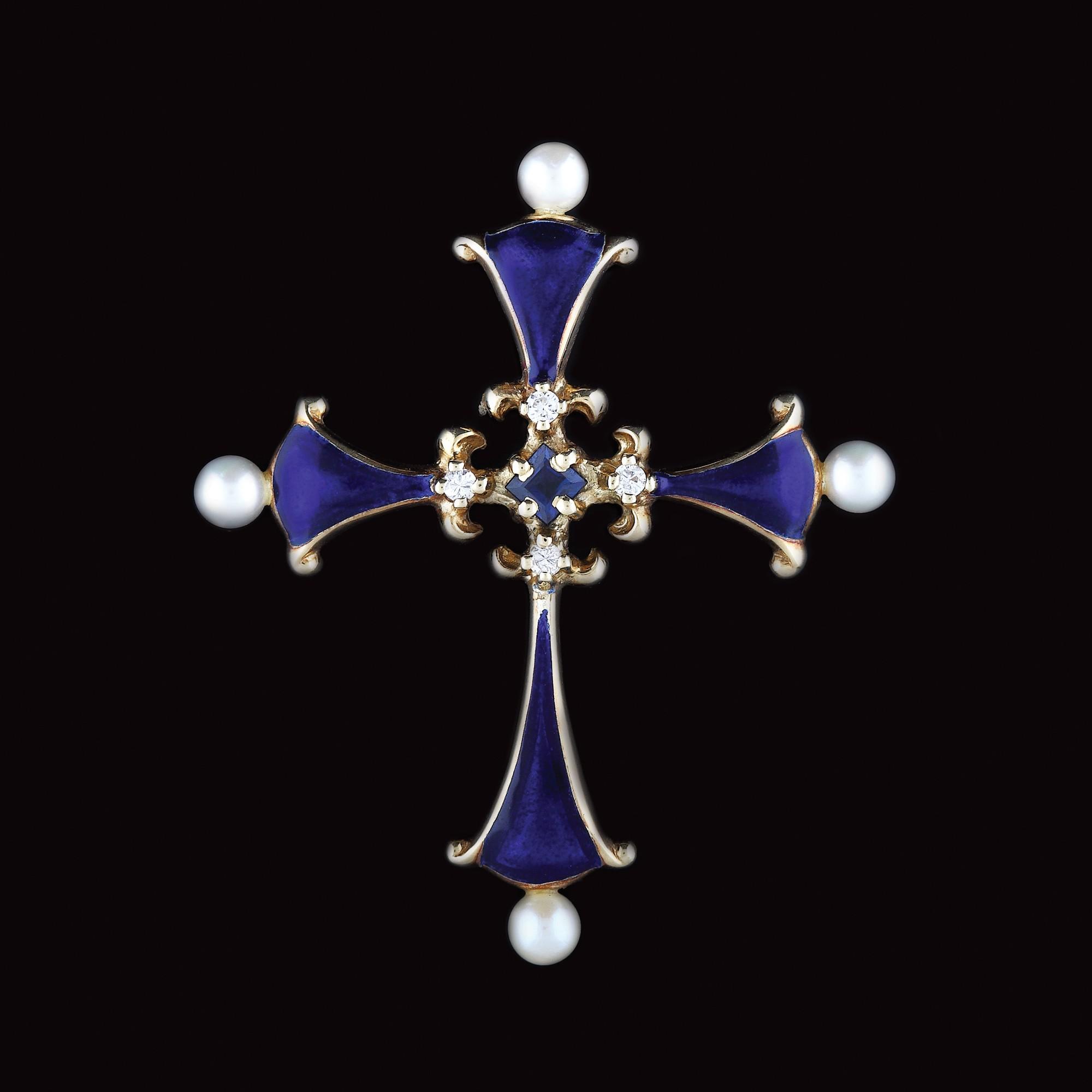 52. Pandantiv Igor Carl Fabergé din aur, decorat cu perle, diamante și email, piesă de colecție