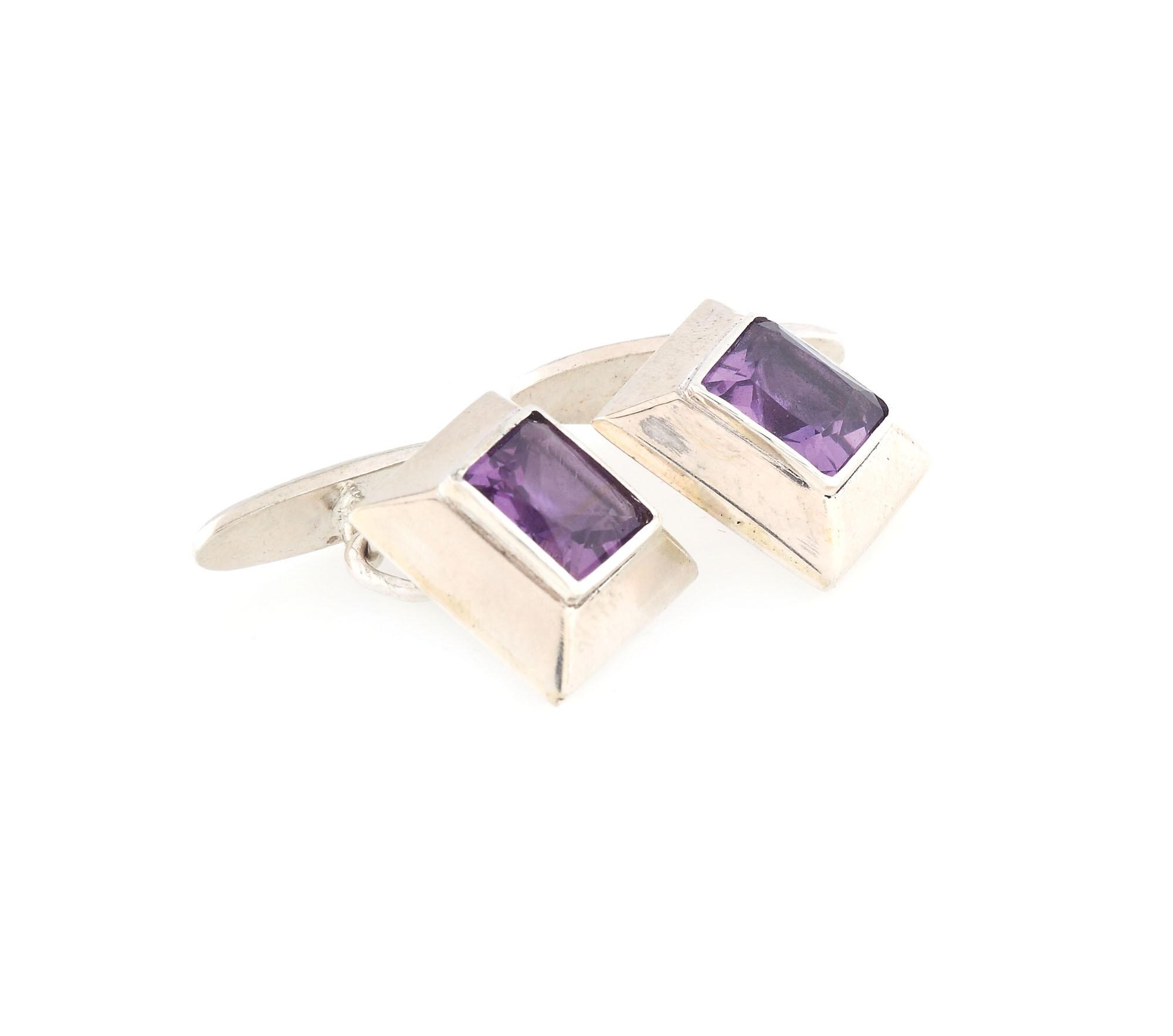 41. Pereche de butoni din argint, decorată cu ametiste, în manieră Art Deco