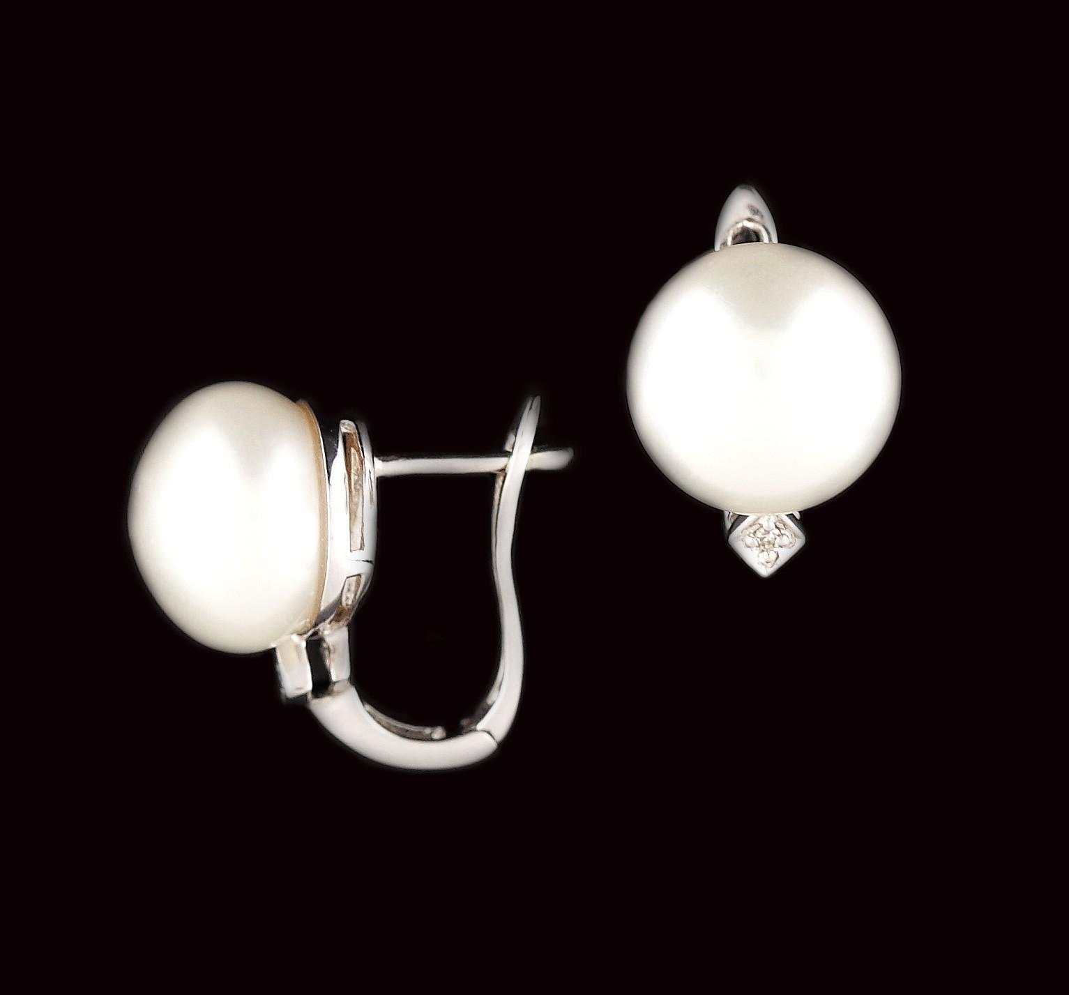 2 perle de cultură freshwater rotunde, albe, d=11,28-11,24 mm și 2 diamante rotunde single cut cca. 0,02 ct., culoare J-K, claritate SI