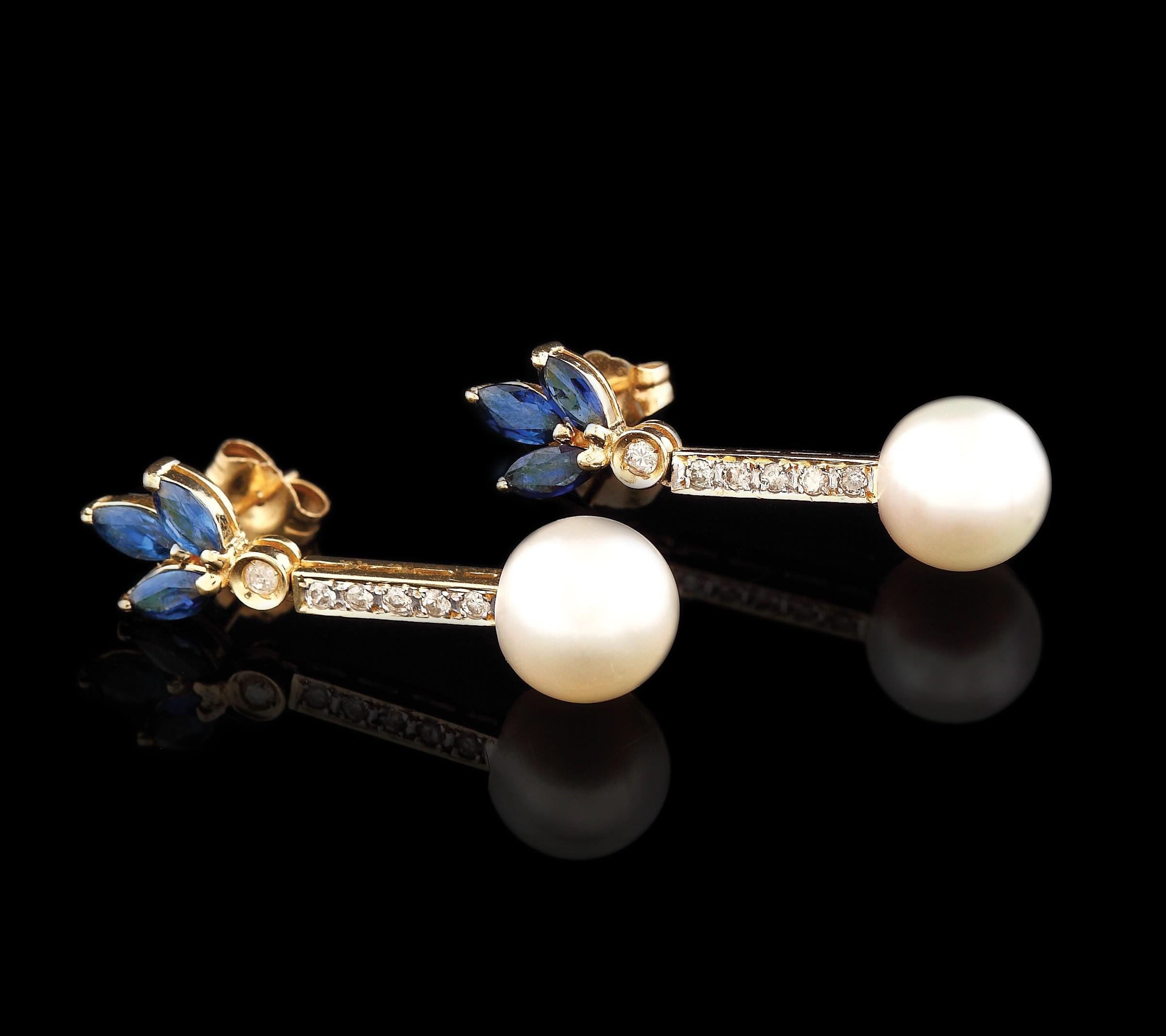 53. Pereche de cercei din aur, decorată cu safire, diamante și perle
