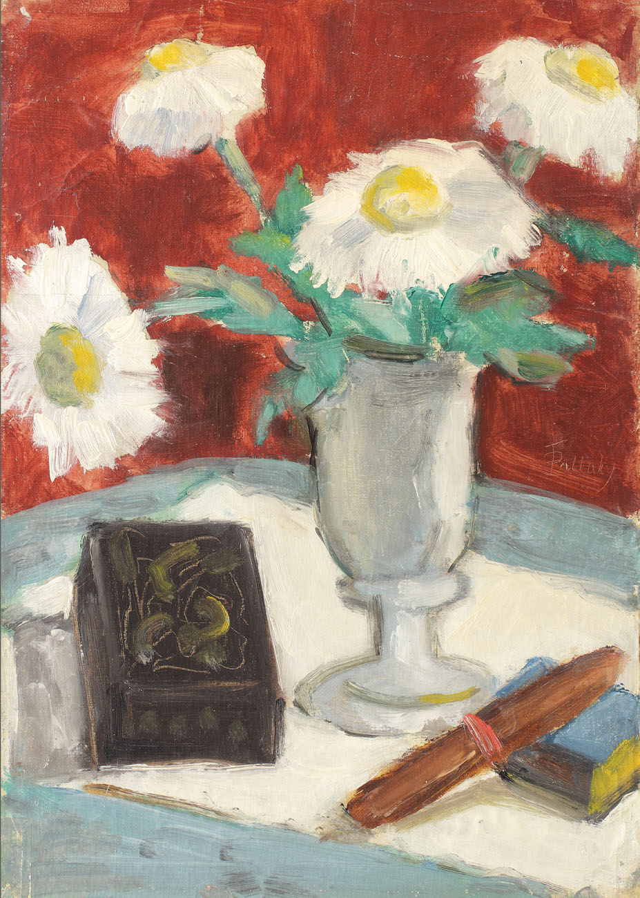 54. Natură statică cu vas cu crizanteme şi trabuc [1941]