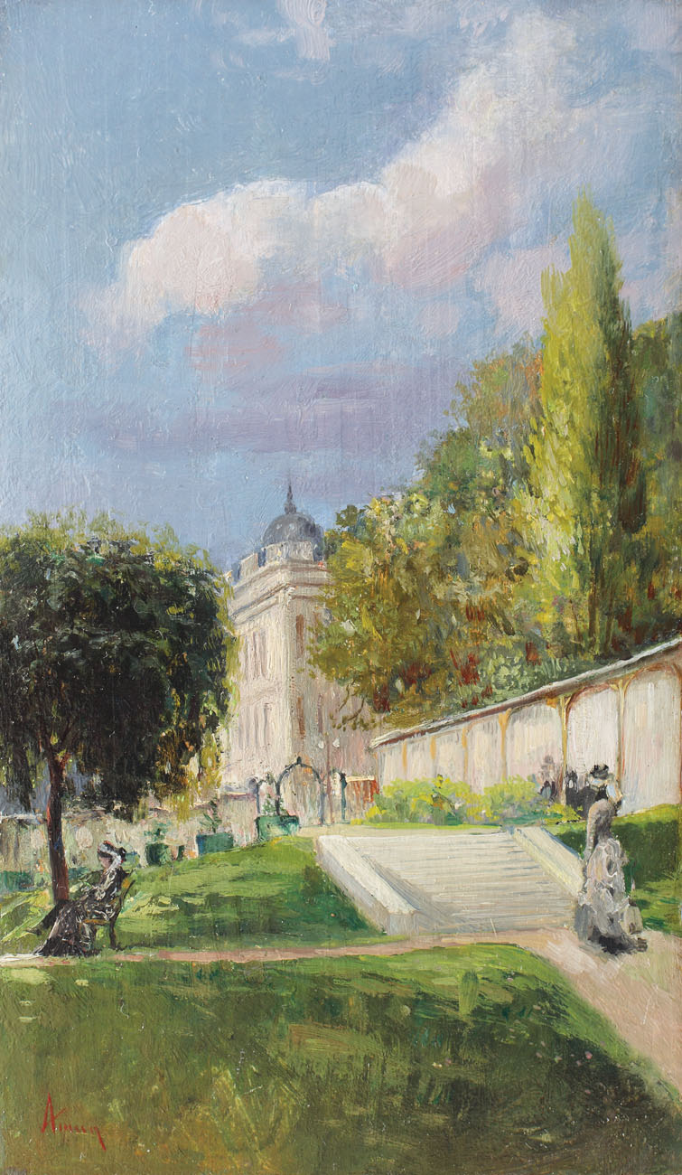 În ultimele două decenii de carieră, Aman avea să își însușească un discurs pictural mult mai cuprinzător și relevant, utilizând mai ales îmbunătățirile aduse lucrului prin practicarea gravurii și a desenului în peniță. Este etapa în care Aman reușește să creeze opere în care își depășește falsa condiție de academist, lucrează în aer liber, pictează în fața motivului, fără reveniri, experimentează cu lumina, dar și cu efectele acesteia asupra compozițiilor. Micile compoziții pe suprafața panelului de lemn reprezintă o componentă importantă a picturii lui Theodor Aman, scenele de gen sau peisajul fiind deseori devoalate pe acest tip de suport. Lucrate în special în a doua parte a carierei, atunci când peisajul primește o importanță mai însemnată, uleiurile lui Aman ne oferă lesne măiestria picturală, datorată în bună măsură nivelului ridicat de detaliu și al calității pensulației. Sinaia avea să fie unul dintre locurile favorite ale lui Theodor Aman, una dintre capodoperele genului purtând amprenta iconografică a cochetei stațiuni turistice – “Pe terasă la Sinaia” (Muzeul Național de Artă al României). Colțurile cele mai însemnate ale orașului alcătuiesc astăzi o imagine cvasi-completă a direcțiilor picturale pe care le-a ales Aman într-unul dintre cele mai grăitoare cicluri peisagiste pe care le-a realizat în cariera sa. (I.P.)