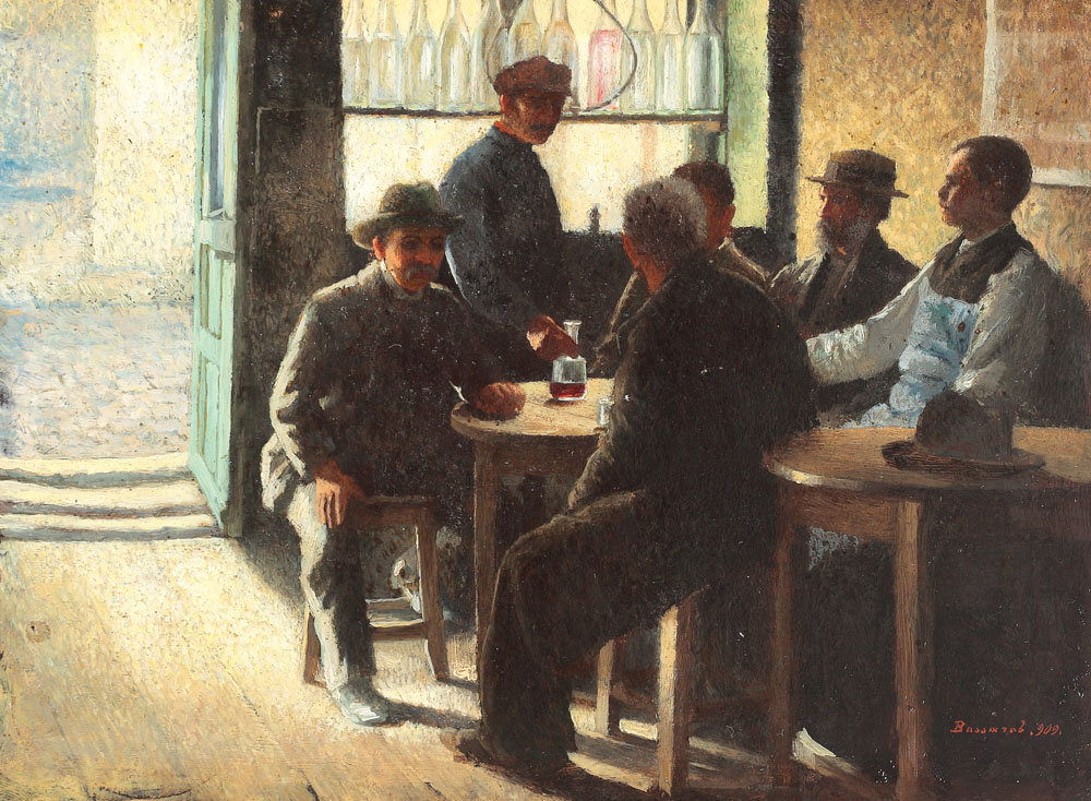 semnat şi datat dreapta jos, cu brun, Bassarab, (1)909