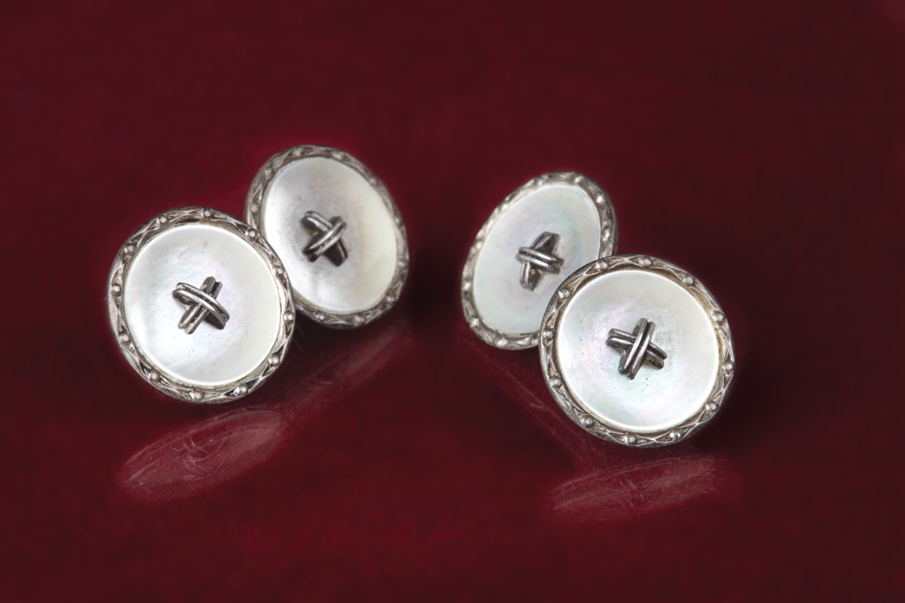 49. Pereche de butoni de manșetă din argint, decorați cu sidef, colecția magazinului Radivon [Prima jumătate a secolului XX]