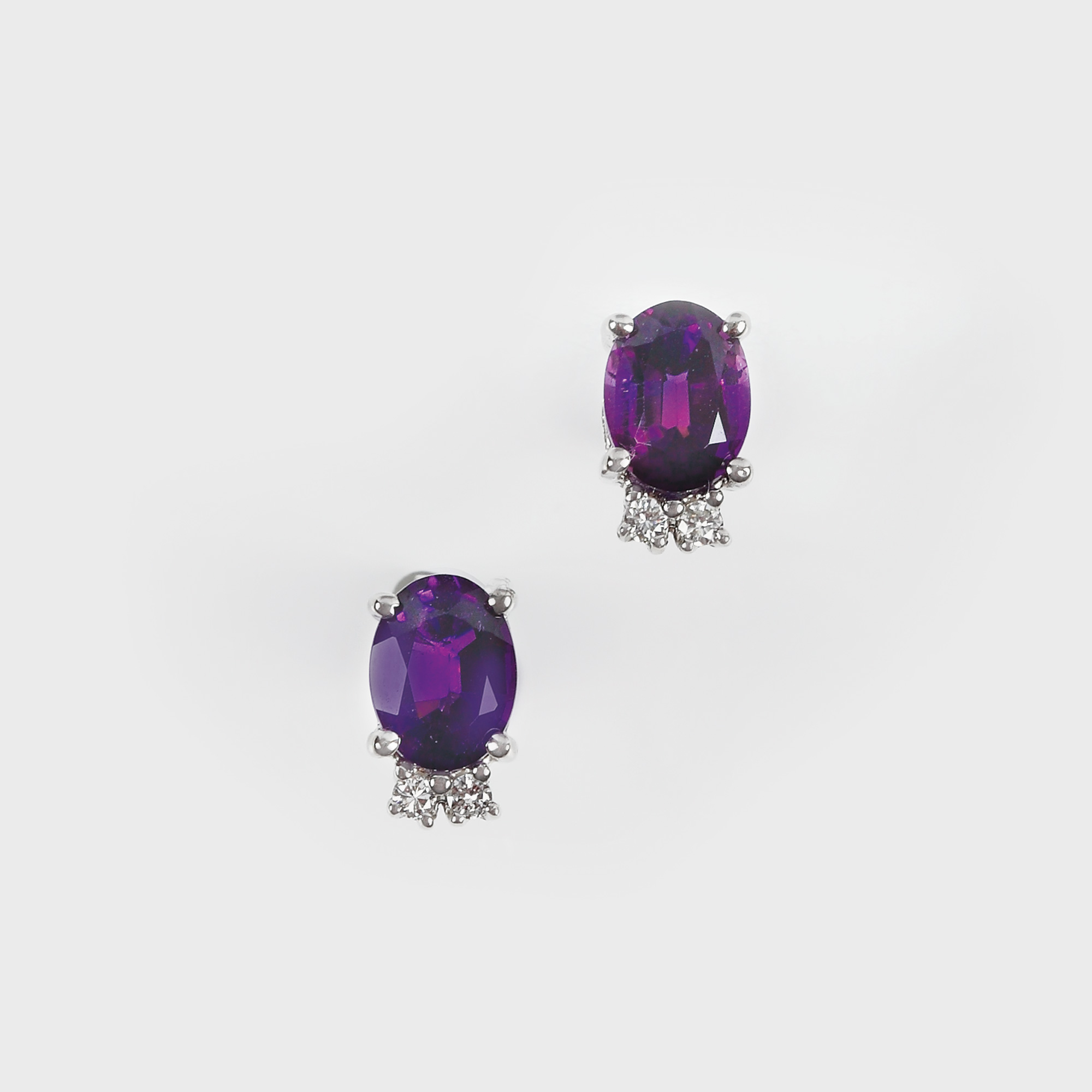 aur alb 14 k, 2 ametiste cu tăietură oval fațetat cca. 1,80 ct total și 4 diamante cu tăietură briliant cca. 0,16 ct total, diamante culoare I-J, claritate SI1-SI2; ametiste claritate VS
