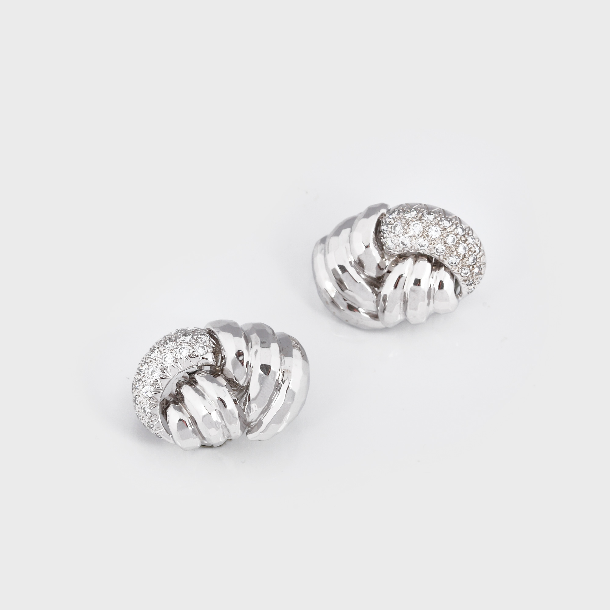 244. Pereche de cercei din aur alb, decorați cu diamante
