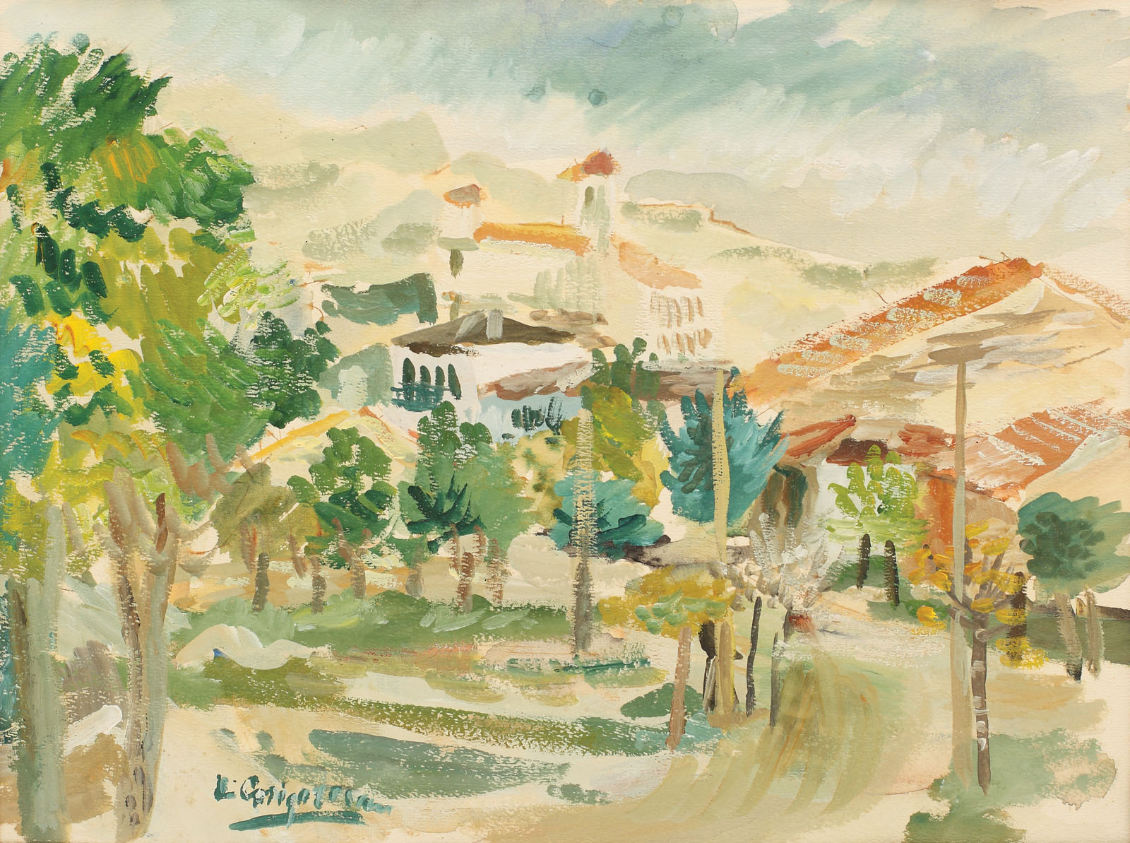 semnat stânga jos, cu verde, L. Grigorescu