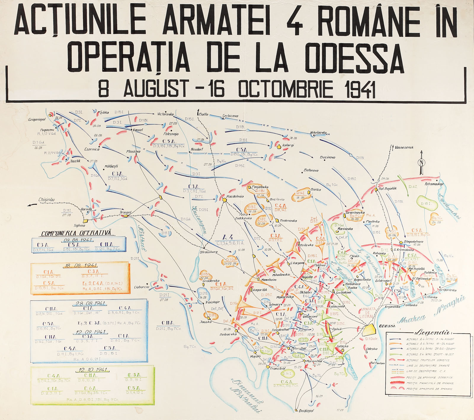 Harta cuprinde, într-o realizare de propagandă adresată publicului larg, direcțiile operațiunilor militare desfășurate de Armata a 4-a română pentru cucerirea Odessei, între 8 august și 16 octombrie 1941. Efortul propagandistic era destinat a acoperi pierderile deosebit de mari ale armatei române în timpul a ceea ce se consideră a fi o victorie majoră a trupelor române în timpul celui de al Doilea Război Mondial.