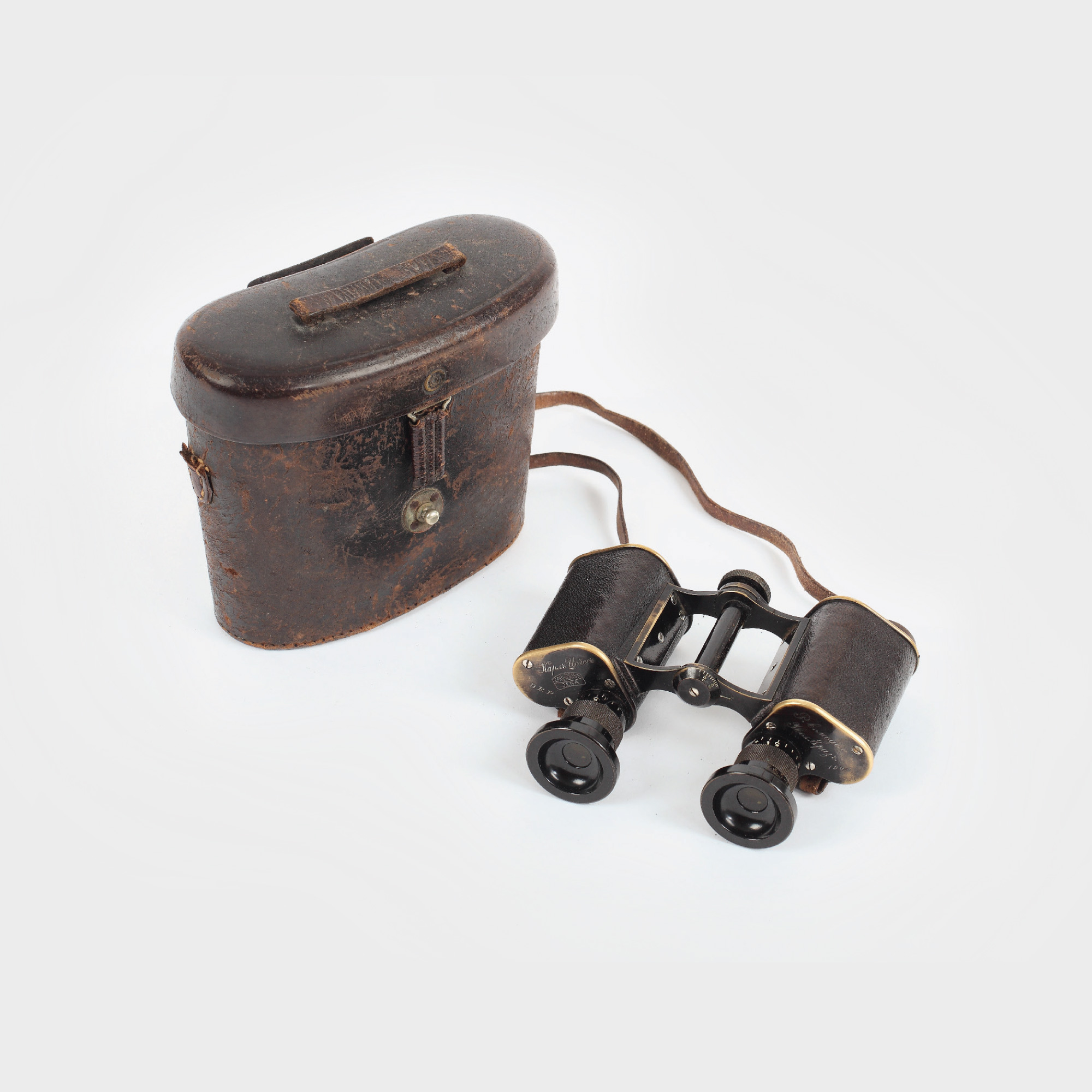 Binoclul era deosebit de fiabil, ușor de manevrat, cu cele două corpuri realizate din alamă brunată, îmbrăcate în piele, legate printr-un sistem de pârghii care permitea reglarea în dreptul ochilor și cu oculare ajustabile care au montate în interior lentile fabricate la Jena. Piesa dispune de curelușa și etuiul originale, ambele din piele.