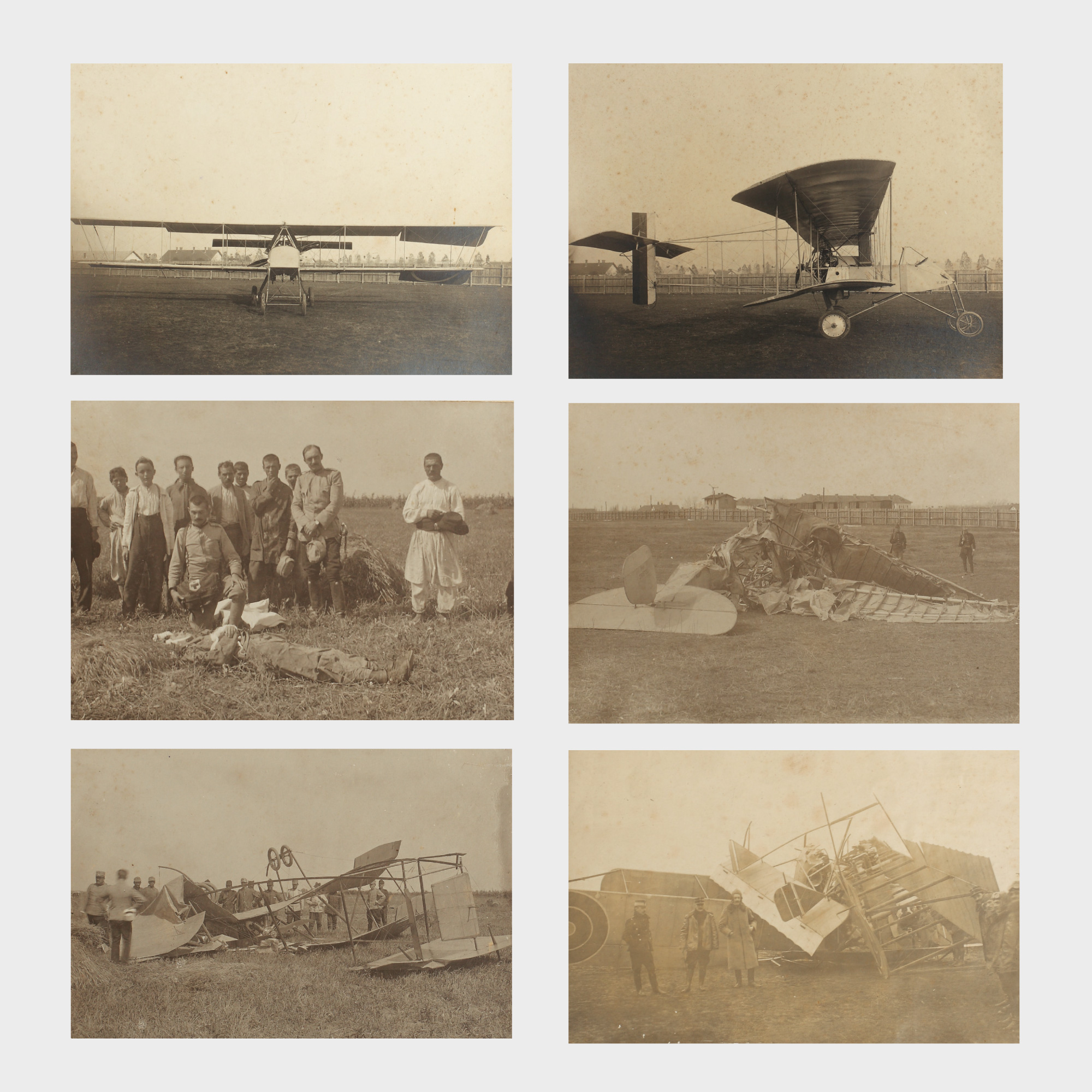 308. Moartea pilotului Gheorghe Caranda, lot de 6 fotografii, aerodromul Cotroceni, iunie 1912