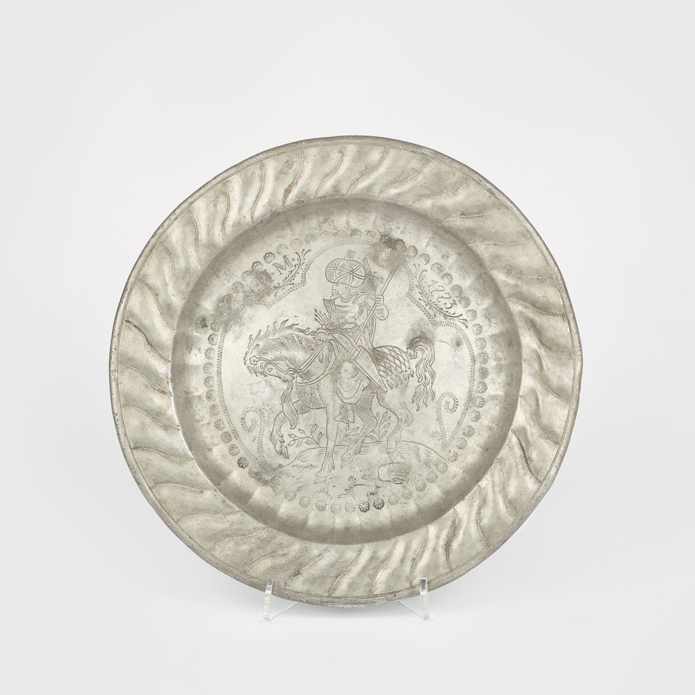 315. Farfurie din cositor, decorată cu călăreț otoman, 1773