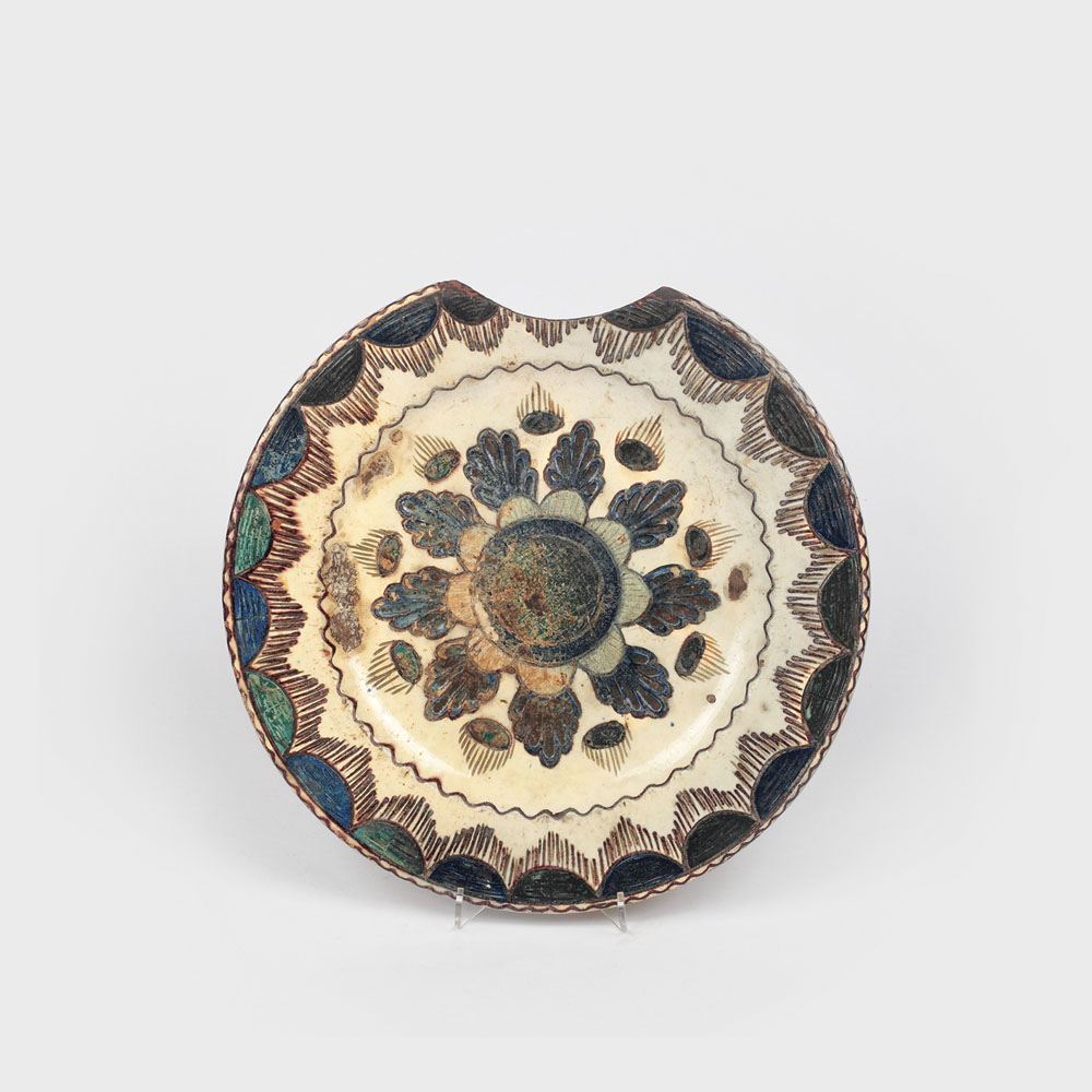 Bărbierii foloseau astfel de obiecte pentru a-și exercita meseria, ceea ce explică decupajul semicircular. Fabricat la roată din argilă, era apoi ars într-un cuptor închis și decorat cu motive vegetale stilizate.
