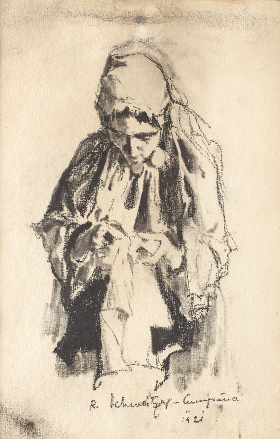 semnat și datat central jos, în cărbune, "R. Schweitzer-Cumpăna, 1921"