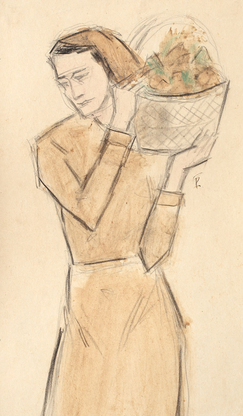 acuarelă și creion pe hârtie lipită pe carton