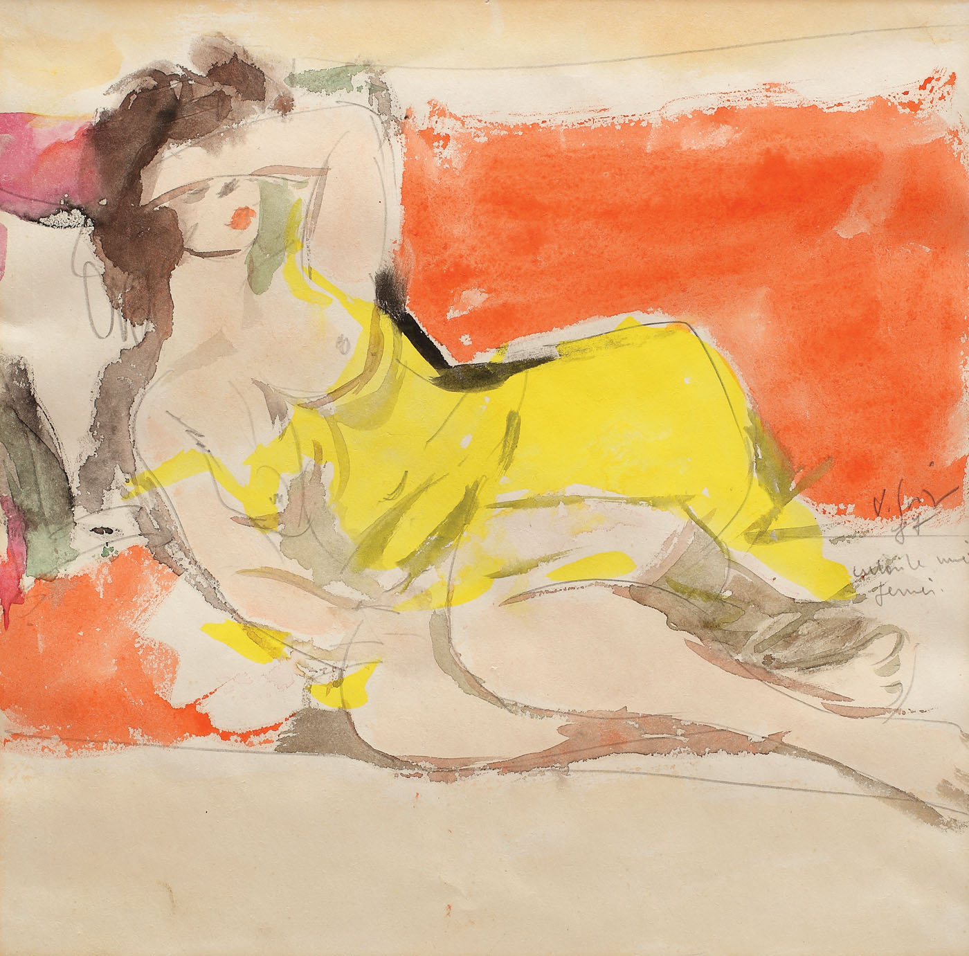 semnat, datat și intitulat lateral dreapta, în creion, "V. Grigore, "Culorile unei femei", (19)77"