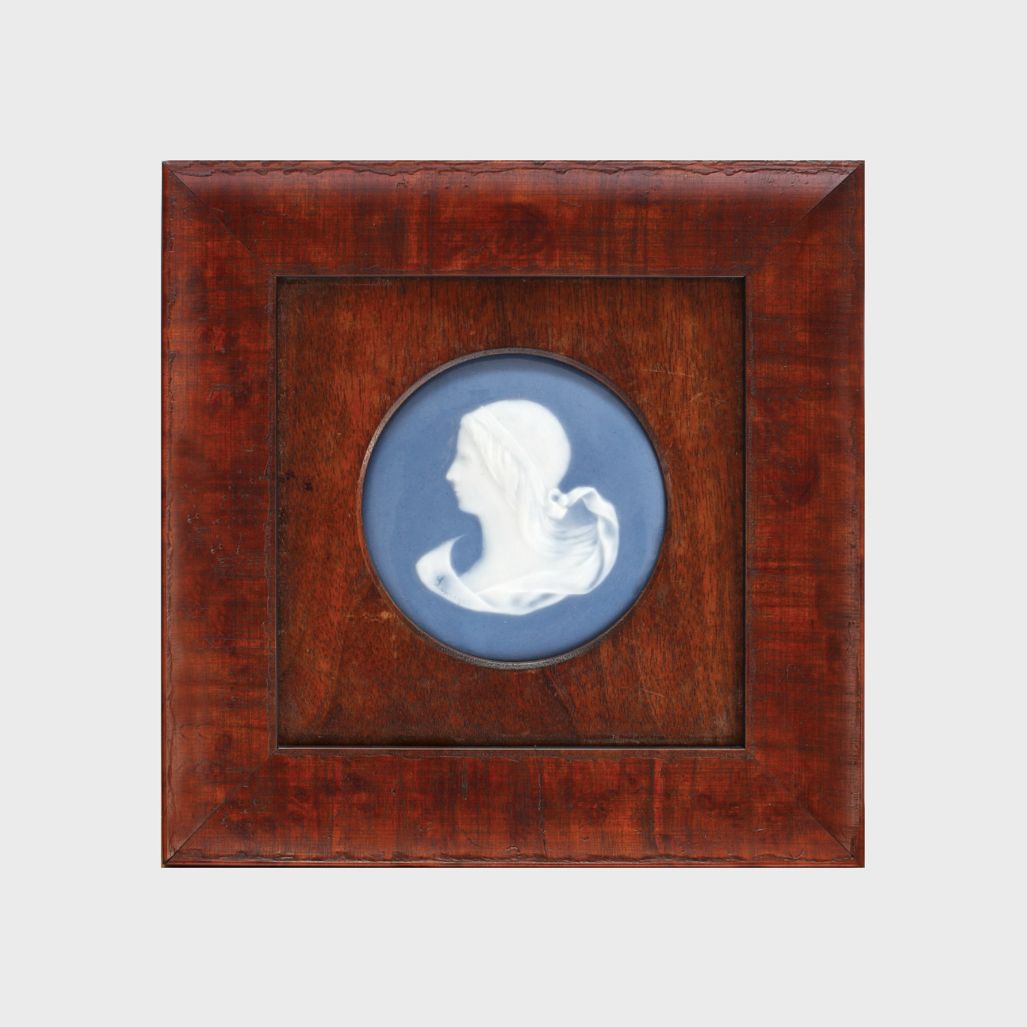 391. Placă decorativă Limoges, decorată cu profil feminin Neoclasic, având inițialele lui Jean Boyer, cca. 1920-1930