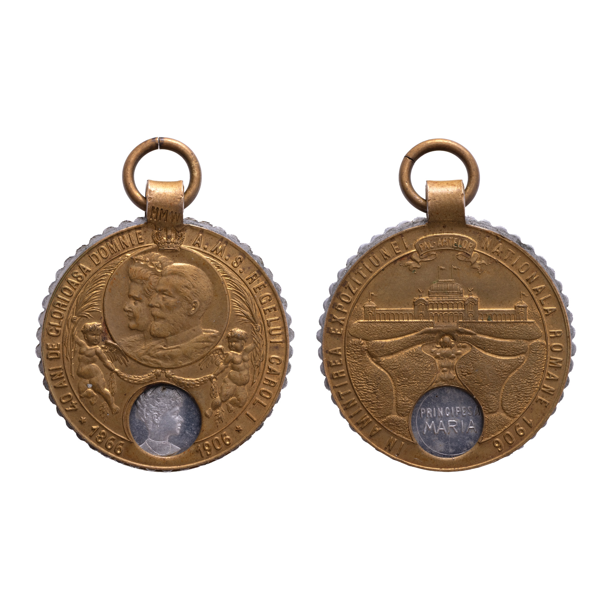 45. Medalion ”40 de ani de domnie a lui Carol I”, ilustrând membrii familiei regale, 1906