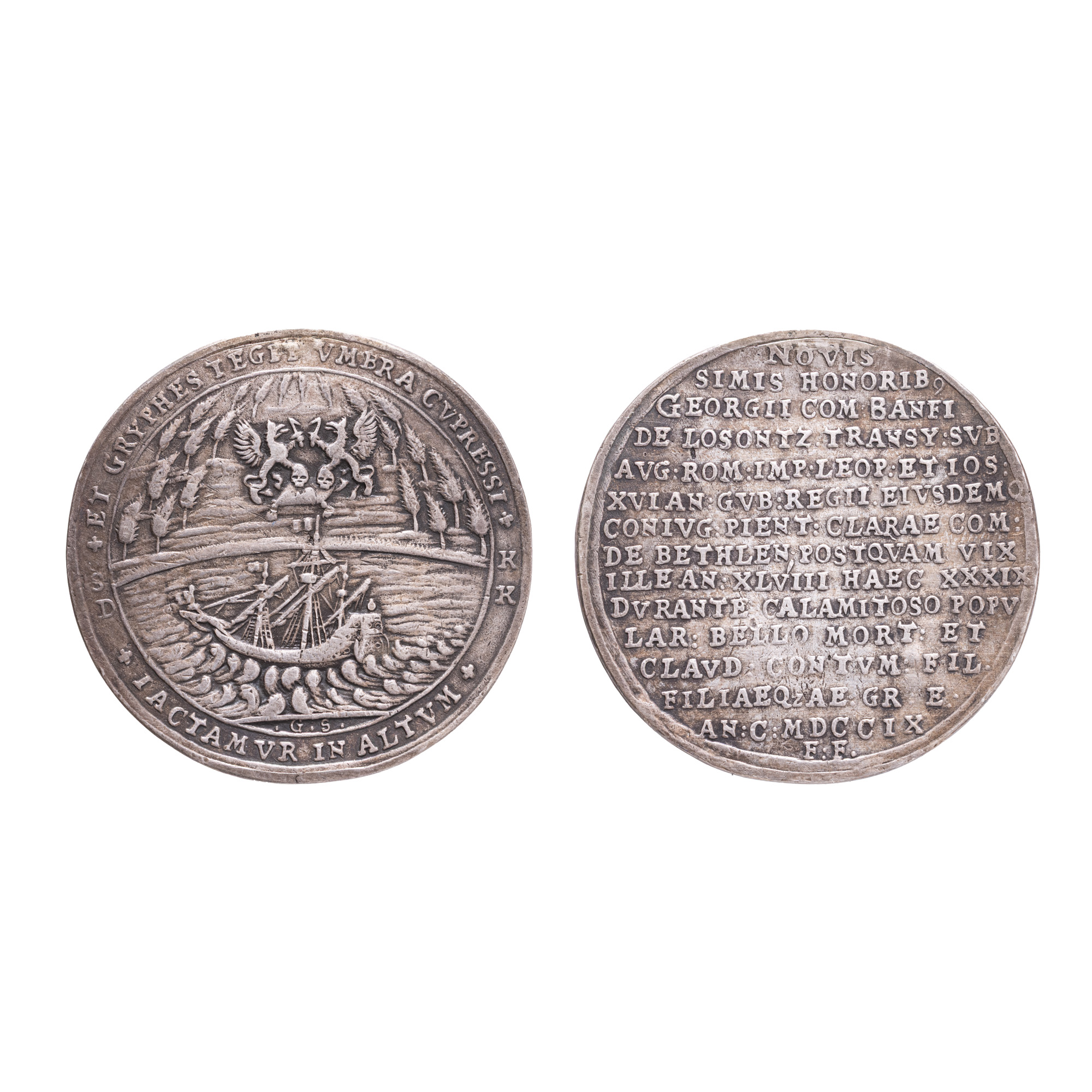 108IT. Monedă comemorativă 1/2 Taler, Gheorghe Bánffy de Losoncz, Principatul Transilvaniei, 1709, argint, piesă rară