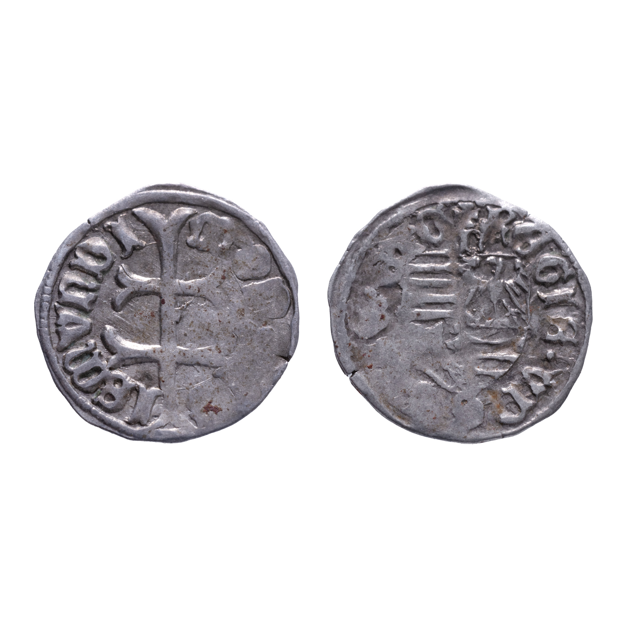 Avers: Cruce dublă. Revers: Stemă împărțită în sferturi cu bare maghiare și vulturi brandeburgezi. Semnul monetăriei deasupra scutului. Regele Sigismund de Luxemburg (1368–1437), una dintre cele mai influente figuri politice ale Europei Centrale și de Est în secolele XIV–XV, a jucat un rol esențial atât în consolidarea Regatului Ungariei, cât și în definirea relațiilor acestuia cu țările române. Fiind rege al Ungariei (1387–1437), împărat al Sfântului Imperiu Roman (din 1433) și rege al Germaniei și Boemiei, Sigismund a fost un monarh ambițios, care a urmărit extinderea influenței casei de Luxemburg asupra unei Europe fragmentate, dar tot mai interconectate. Una dintre cele mai semnificative preocupări ale sale a fost lupta împotriva pericolului otoman, care începuse să amenințe grav sud-estul Europei. În acest context, țările române – în special Țara Românească și Moldova – au devenit aliați sau adversari strategici, în funcție de interesele momentului. Sigismund a căutat să includă aceste state în sistemul de apărare al Coroanei maghiare, dar și să le subordoneze politic. Relația sa cu Mircea cel Bătrân, domn al Țării Românești, a fost una complexă. În fața pericolului otoman, cei doi au încheiat o alianță antiotomană, concretizată prin participarea ambilor la bătălia de la Nicopole (1396), una dintre cele mai mari confruntări ale cruciadelor târzii. Deși bătălia a fost un eșec pentru creștini, ea a demonstrat angajamentul lui Sigismund de a crea un front comun împotriva expansiunii otomane și importanța strategică a Țării Românești în acest efort. Totuși, politica sa de subordonare a voievodatelor române nu a fost întotdeauna bine primită. A încercat să impună dominația maghiară asupra acestor state, inclusiv prin intervenții militare sau sprijinirea unor domni favorabili Coroanei. Cu Moldova, relațiile au fost tensionate, mai ales în perioada lui Alexandru cel Bun, care a oscilat între alianțe cu Polonia și o atitudine precaută față de Ungaria. Pe plan european, Sigismund s-a remarcat prin inițierea Conciliului de la Konstanz (1414–1418), care a pus capăt Marii Schisme din Biserica Catolică și a încercat reformarea clerului. Aceasta i-a consolidat imaginea de monarh preocupat de unitatea creștină – ideal ce se reflecta și în viziunea sa despre o cruciadă unificatoare împotriva otomanilor.