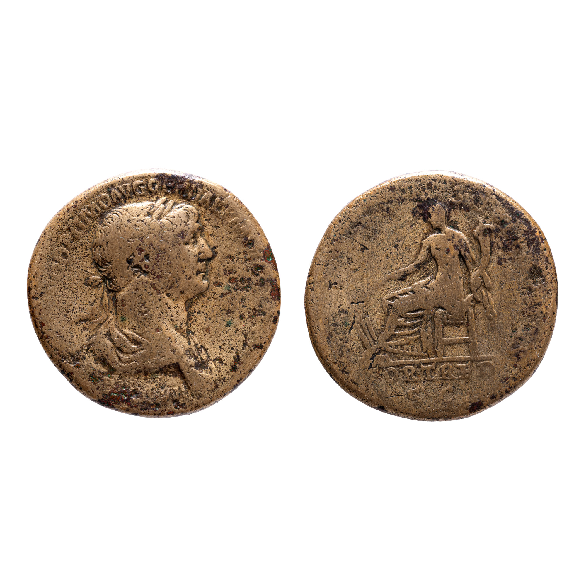 65F. Monedă Sestertius, Traian, tip Fortuna, cca. 114-116 e.n.