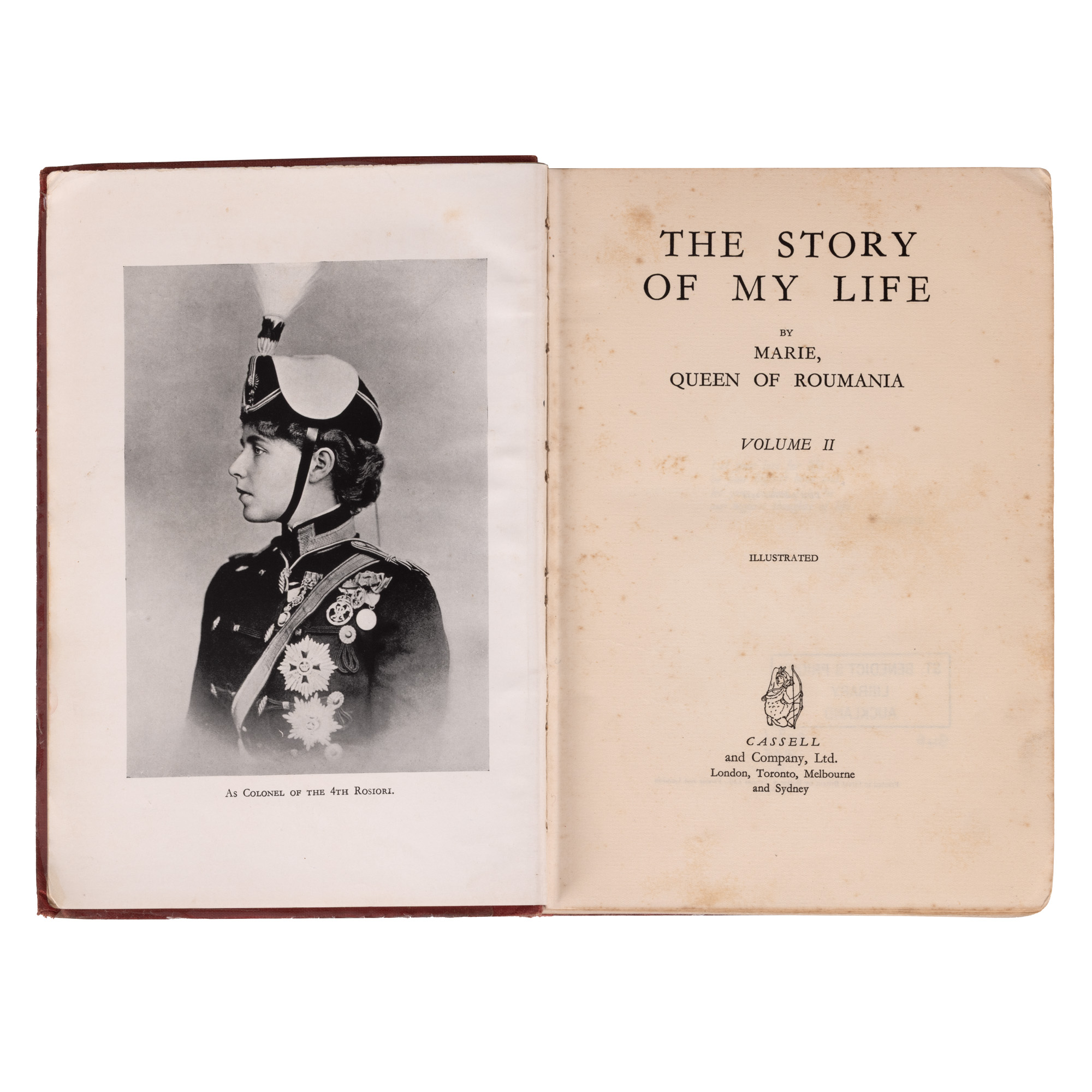 1. ”Povestea vieții mele”, de Regina Maria a României, trei volume, engleză, Londra, 1934-1935, cu dedicația olografă a Reginei și ex-libris