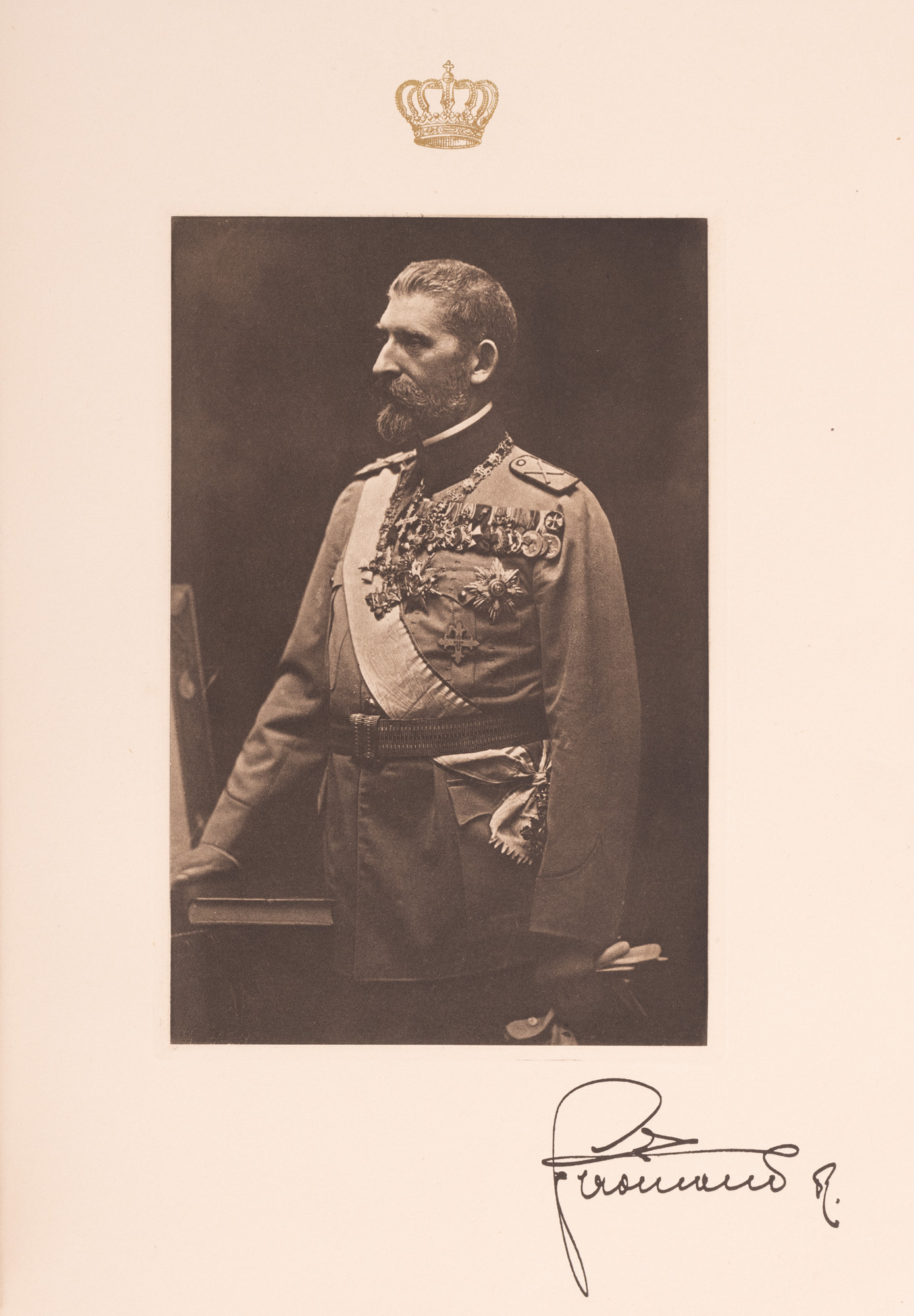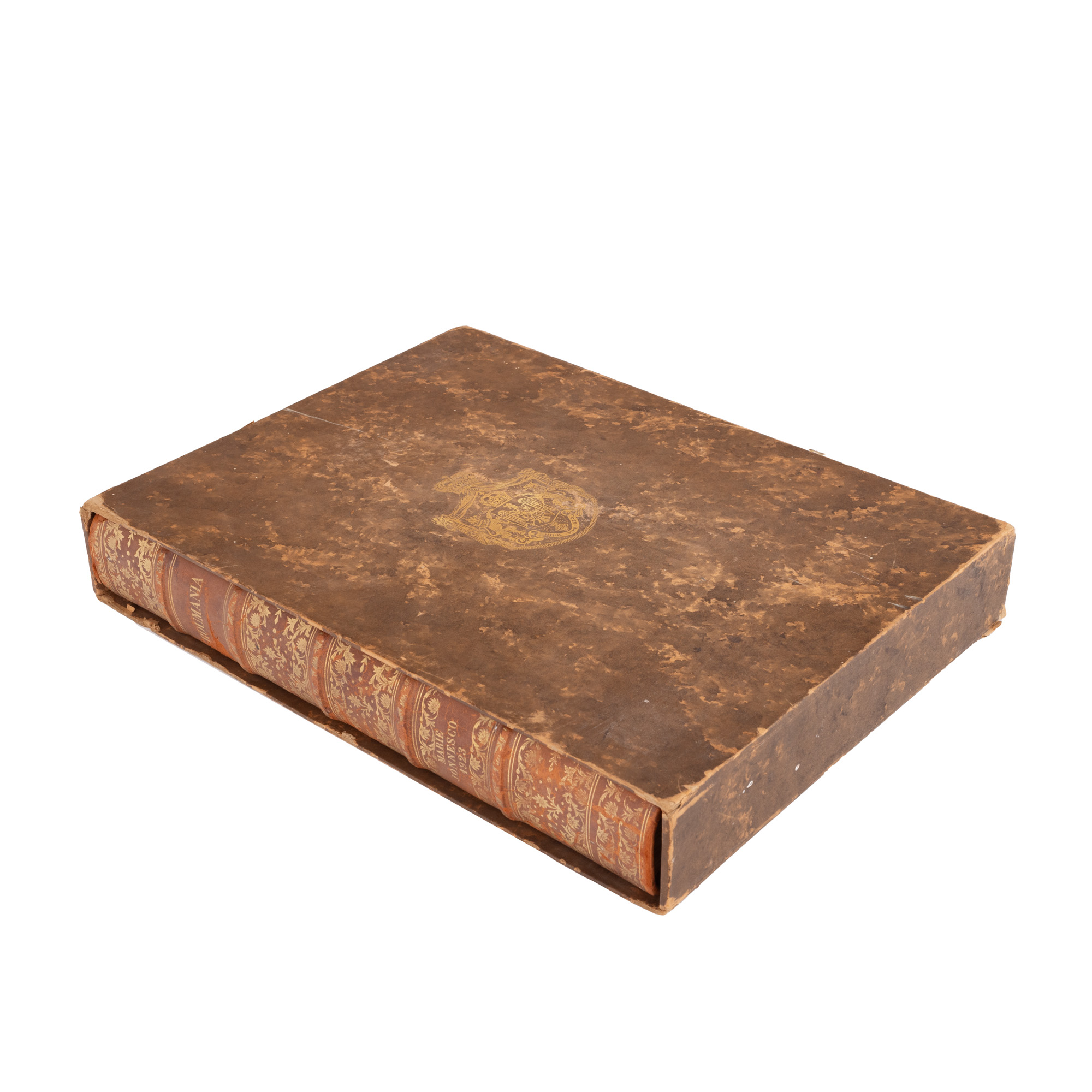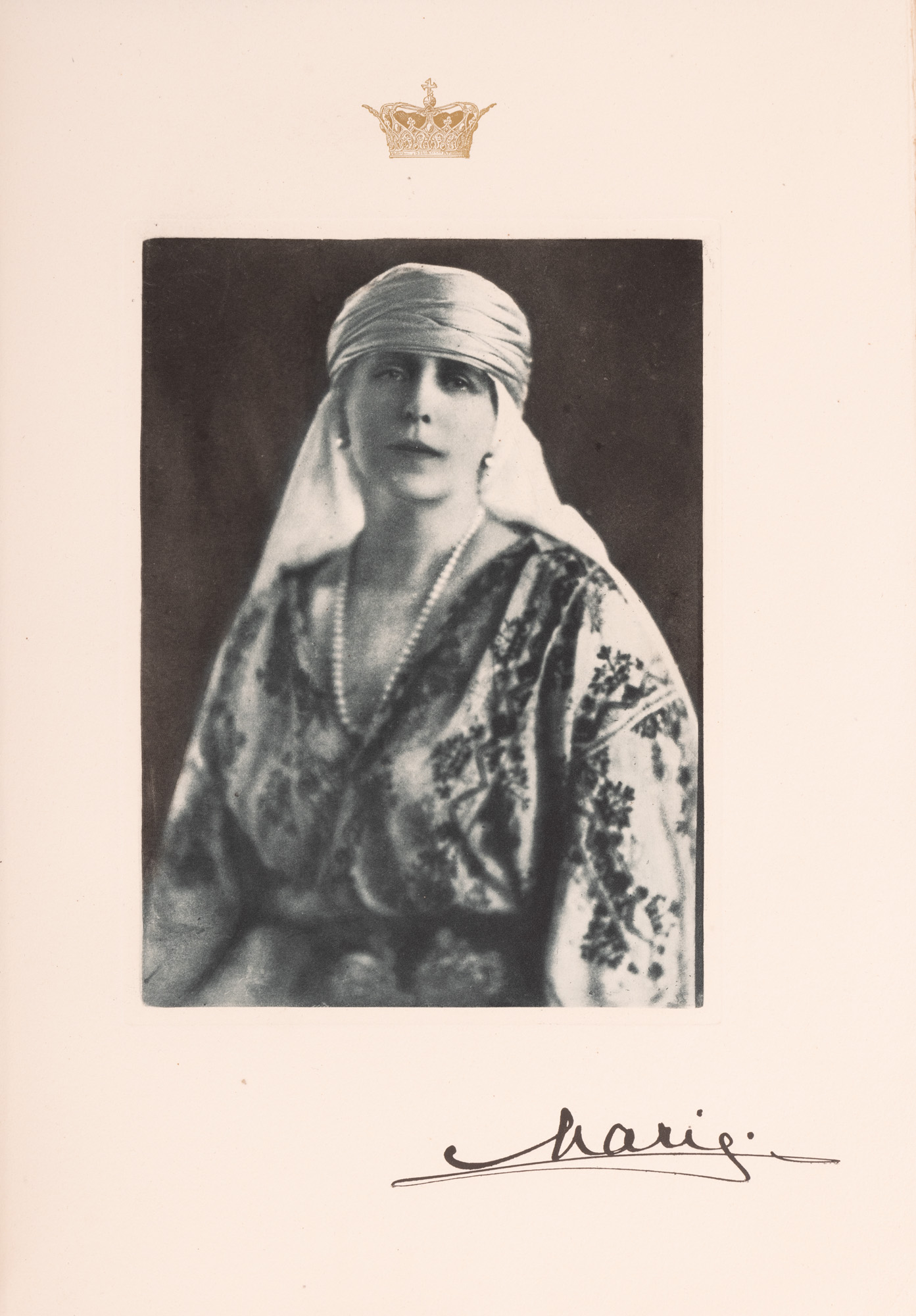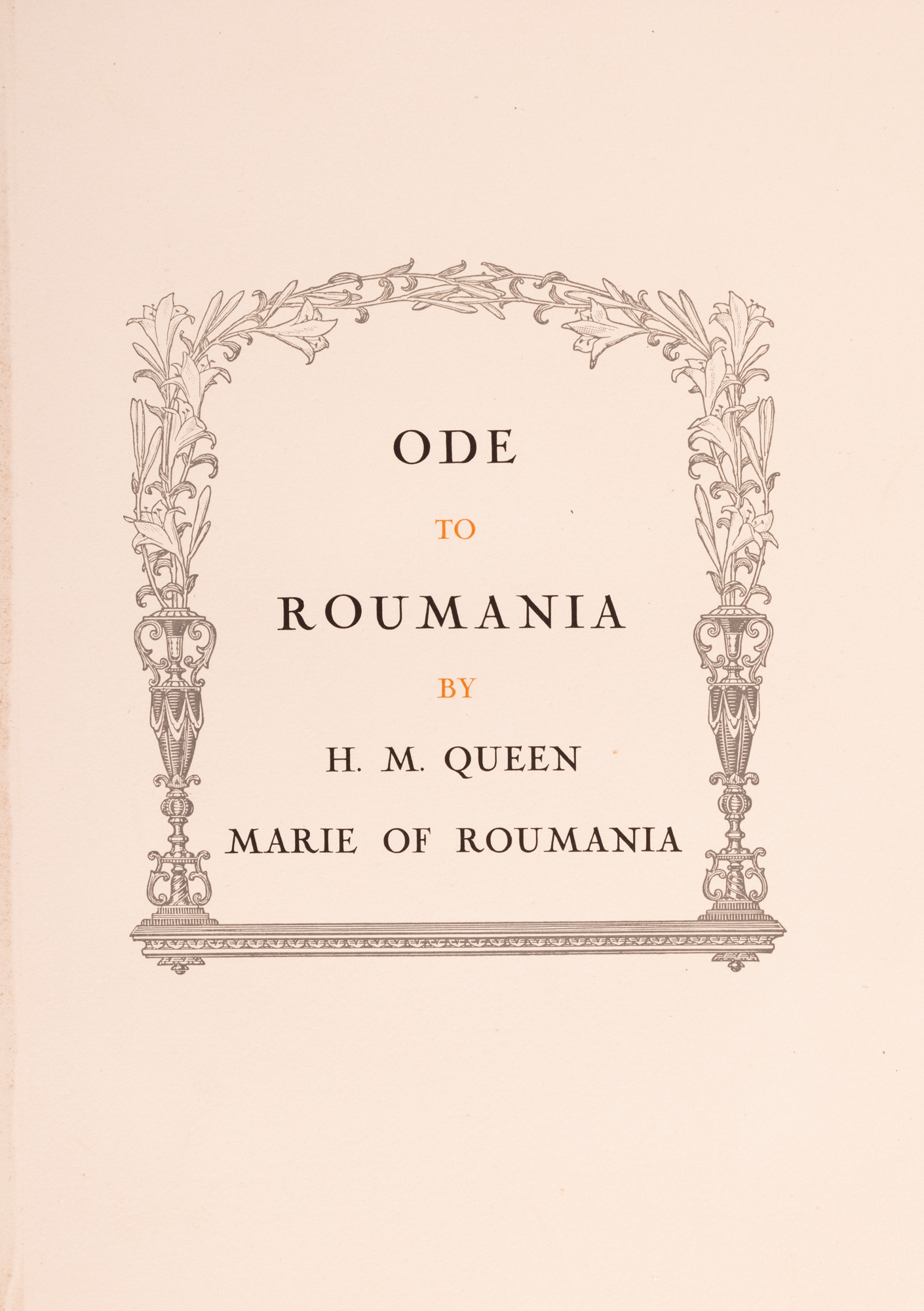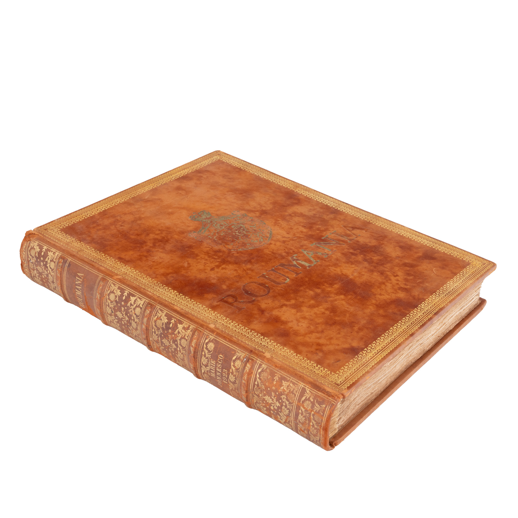 3. "România" (Ode to Roumania), de Regina Maria, editată de Maria Ionescu, engleză, Paris, 1923, ediție de lux, exemplarul 19/100, cu 64 de fotogravuri, cu dedicația olografă a editorului, cu etuiul original, însoțită de programul unui eveniment organizat în onoarea României, piesă extrem de rară, de colecție
