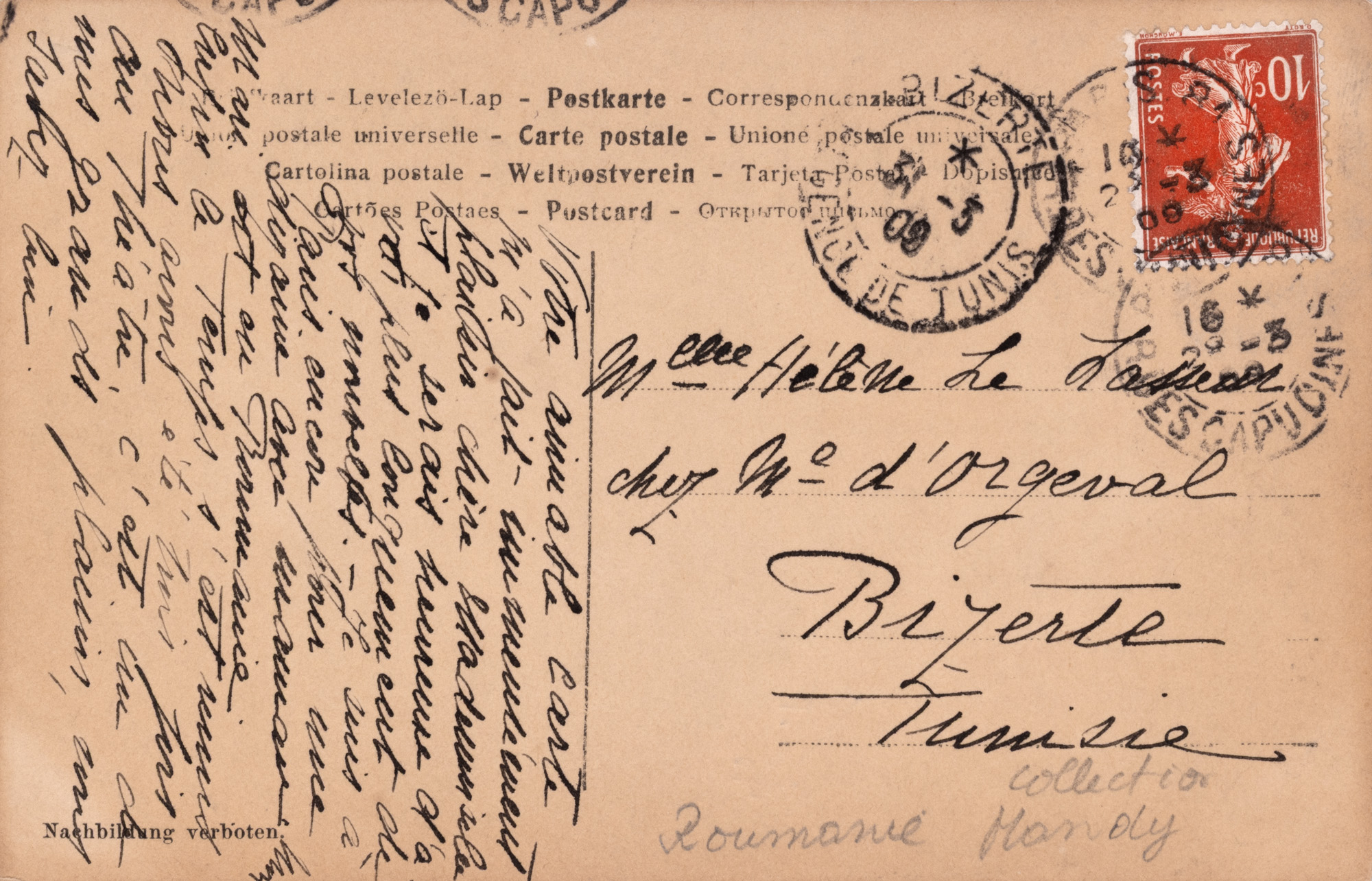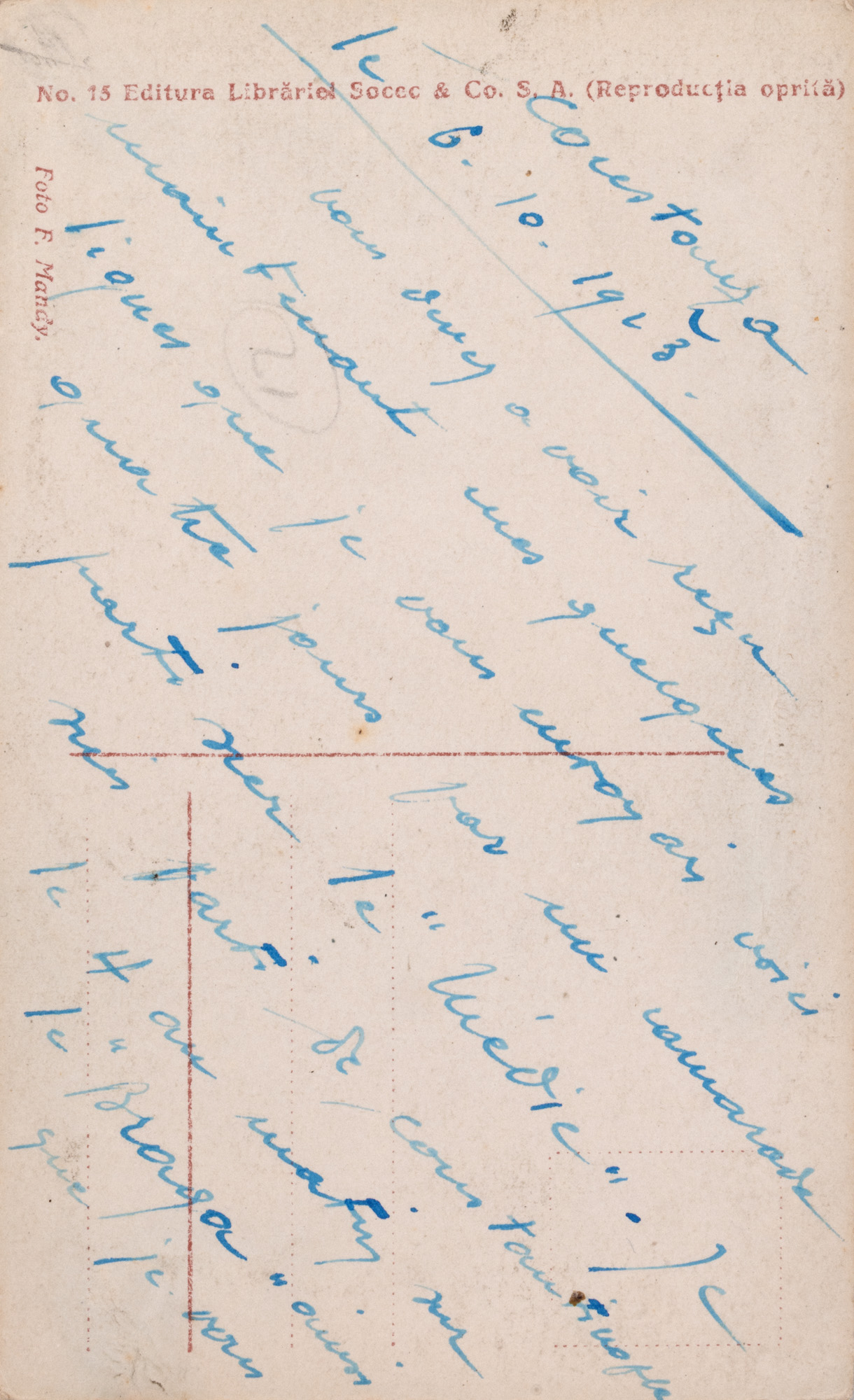 Trei cărți poștale sunt circulate: a) București-Sulina, iulie 1906; b) București-Paris, octombrie 1909; c) București-Bizerta (Tunisia), mai 1909; ștampilele și mărcile poștale sunt intacte. Celelalte cărți poștale nu sunt circulate. Toate piesele se păstrează într-o bună stare de conservare.