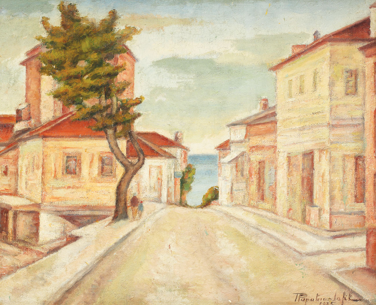 semnat și datat dreapta jos, cu brun, T. Papatriandafil, 1935
