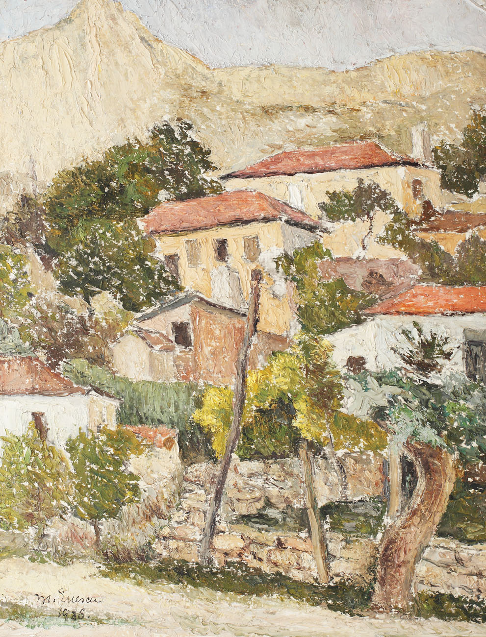 semnat și datat stânga jos, cu negru, M. Enescu, 1936