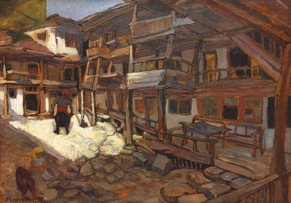 Artist de o mare sensibilitate cromatică, exprimându-se prin rafinate modulaţii de culoare, Paul Miracovici a fost fermecat ca şi maeştrii săi – Tonitza, Steriadi, Ressu – de inconfundabilele peisaje dobrogene care impresionează prin frumuseţea simplă şi lumina arzătoare. Impresiile ţinuturilor Balcicului sunt descrise cu aceeaşi intensitate a imaginii pure, în scrisorile artistului către cea care avea sa-i devină soţie, Margareta. Epistolele sale ilustrează culorile Balcicului aşa cum l-a simţit în călătoriile sale, care paradoxal devine “imposibil de descris cât este de frumos, de bizar şi ireal”. O mare parte din lucrările lui Miracovici sunt de un mare efect plastic: natura perlată a suprafeţei picturilor, registrul cromatic al acestora, prăfuit parcă de ţărâna Balcicului, siluetele solitare înscrise în ecranul dealurilor albe, creează peisaje uimitoare. Într-o oarecare antiteză cu acestea, din punct de vedere cromatic, se află opera “Han turcesc” a cărui atmosferă se apropie mai mult de cuvintele pictorului, într-una din scrisorile sale, din 9 septembrie 1934 : “Balcicul s-a golit şi e trist de tot. Timpul este mai mult gris. Am şi pictat câteva tablouri în gris.” Tonalităţile sunt neutre, dar acumulează o transparenţă ce nu le face opresive, ci armonioase. Motiv de inspiraţie atât pentru Miracovici cât şi pentru Steriadi, hanul turcesc devine un edificiu de referinţă în lumea Balcicului. O descriere a acestuia ne-o oferă Ştefan Roll, într-unul din citatele lucrării “Balcicul în pictura romănească” a Doinei Păuleanu: “La Hanul vechi, de o curioasă construcţie veneţiană, n-a rămas decât Ibrahi, cafegiul şi două, trei prostituate. În vremurile de altădată, venia lume care câştiga mii de napoleoni, mânca, benchetuia, iubia. Azi n-au mai rămas decât vestigiile pauper, răbojurile şterse ale lucrurilor de atunci. În geometria degringolată, cu balcoane scălâmbate de jur împrejurul curţii, fizionomia luxoasă odinioară, s-a zbârcit. Dintr-un obraz ales n-a rămas decât un păenjeniş de riduri, o explozie de linii. Pe privoarele de lemn, venerele tătăroaice, cu sprâncene împreunate ca o linie trasă din funigeni cu untdelemn, adulmecă hamalii, marinarii şi efebii. În curtea pustie, un turc potcoveşte calul ciorbagiului. Dar sunetul potcoavei ciocănite… e de lemn şi dogeşte până în anul de acum un veac când a fost construit hanul”. (M.N)