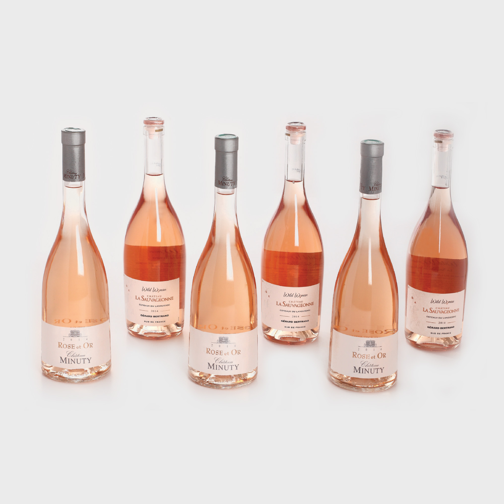 A. Rosé et Or produs de Château Minuty este un cupaj de 95% Grenache ce provine din vițe de vie vechi de 30 de ani si 5% Syrah din vițe de 20 de ani si este rosé-ul suprem produs de Château Minuty din Provence. Vițele vechi și cantitățile limitate de struguri pe hectar contribuie la realizarea unui vin rosé de foarte bună calitate. B. Wild Woman este traducerea în engleză a termenului ‘Sauvageonne’ din denumirea numelui producătorului și face referire la terasele vulcanice neatinse și priveliștea impresionantă. Parcelele de vie se află în partea de centru-nord a ținutului Herault, fiind o zona ce experimentează variații mari de temperatură, iar proximitatea de mare și de Causse aduce răcoare în timpul nopților de vară, rezultatul fiind o coacere graduală și lină a strugurilor. Domeniul este deținut de către celebrul Gerard Bertrand, un fost jucător de rugby al echipei naționale a Franței, cel care deține un vast domeniu de vii din regiunea Languedoc. Este un vin rosé aparte, fiind parțial maturat în butoaie mici de 225l de stejar franțuzesc timp de 6 luni, stilul vinului fiind intens și opulent în arome.