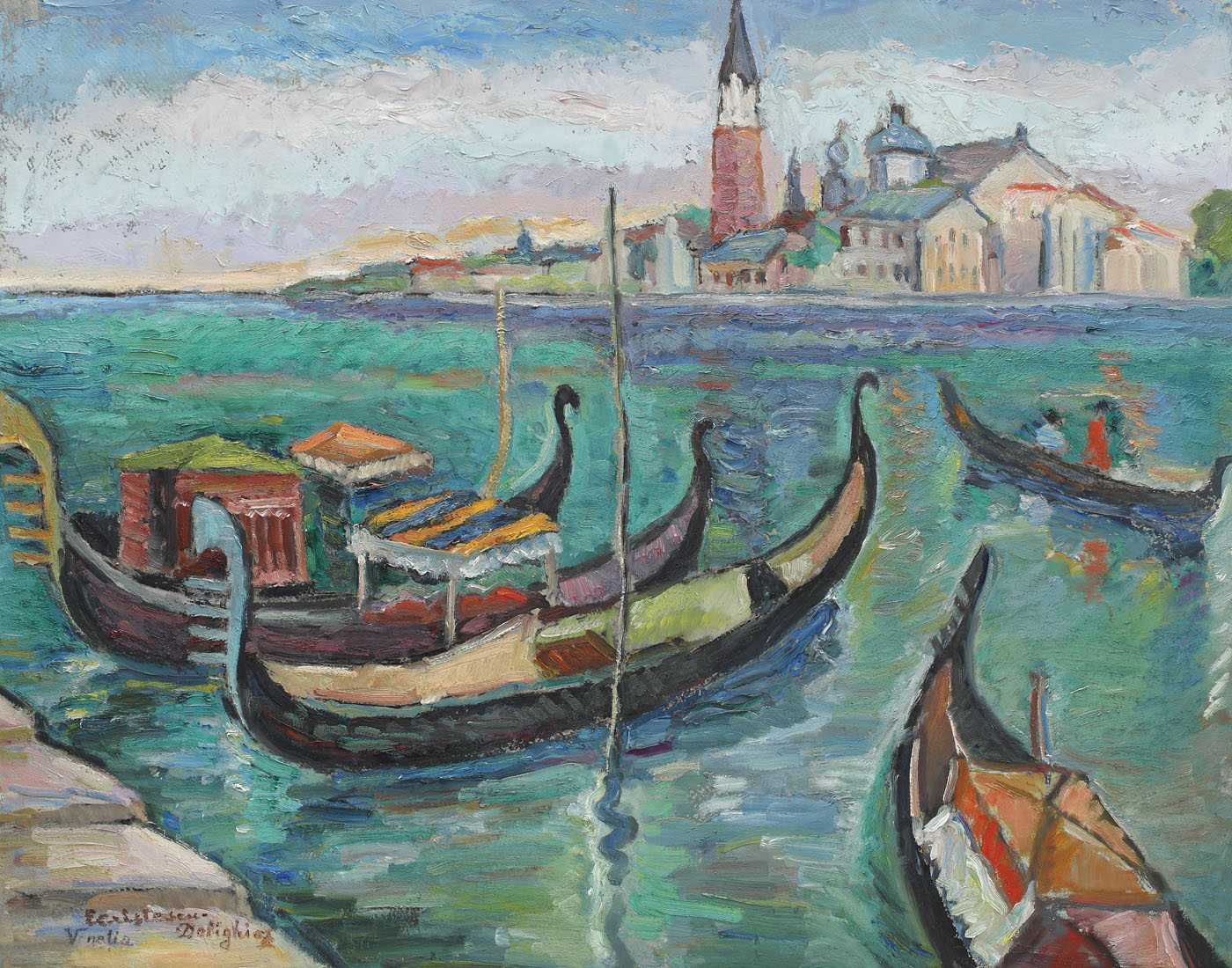 semnat și localizat stânga jos, cu brun, "E. Cristescu Delighioz, Veneția"