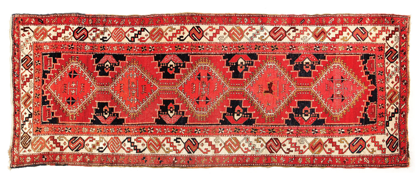 102. Covor tribal persan din lână, realizat de către nomazii Meshkin, din nord-vestul Persiei, cca. 1900-1920, piesă rară de colecție