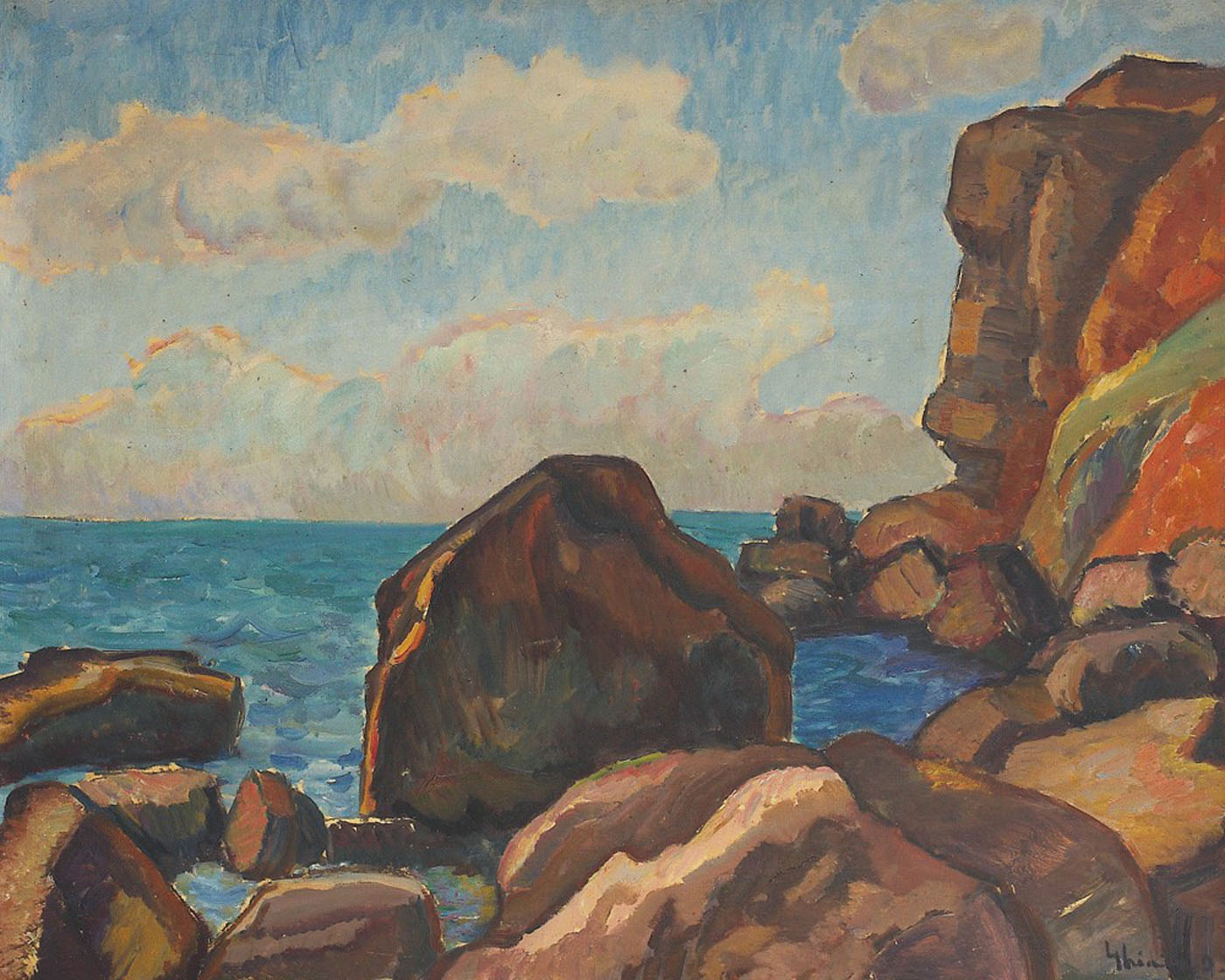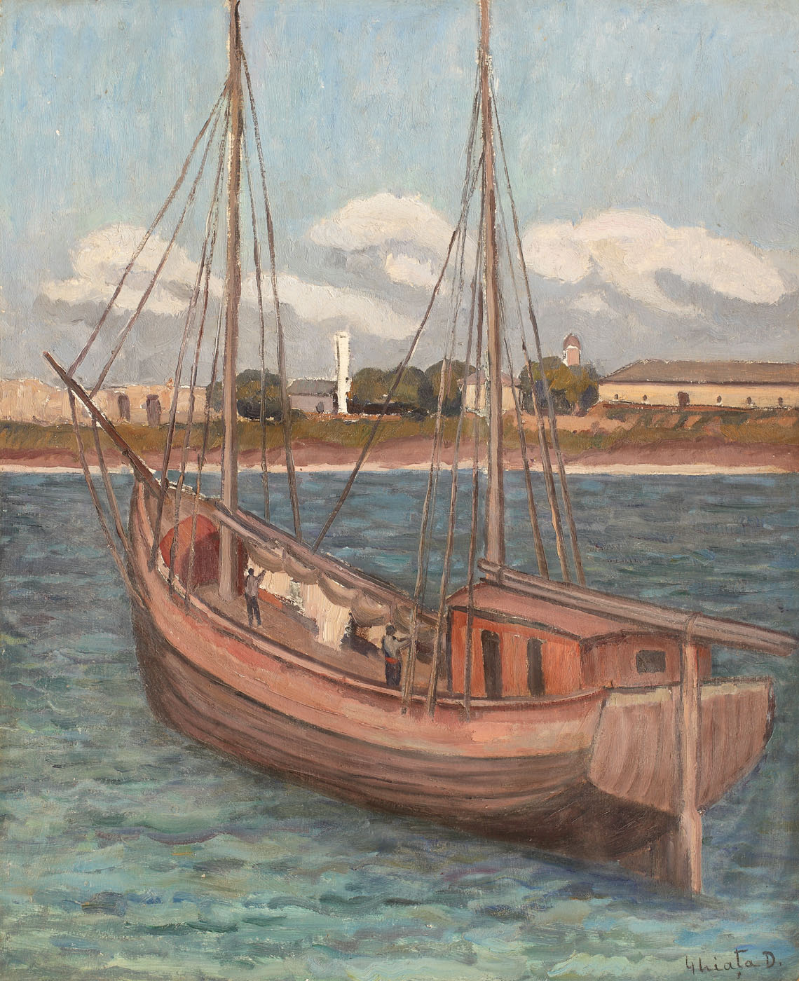Prietenia cu Jean Alexandru Steriadi avea să îi înlesnească lui Dimitrie Ghiață descoperirea rapidă a litoralului românesc, descoperire importantă pentru o serie întreagă de artiști ce au lucrat în perioada interbelică. În 1920 se înscria în gruparea “Studio” – loc în care Steriadi preda lecții de pictură, gravură și desen, studii pe care avea să le continue în preajma prietenului și maestrului și în călătoriile în Dobrogea. Primele impresii din din Dobrogea le descoperim prin desenele realizate încă din 1920 (vezi “Peisaj industrial din Balcic” și „La marginea orașului”, colecția Muzeului Memorial Dimitrie și Aurelia Ghiață). Pictura lui Ghiață din această perioadă este una cerebrală, specificitatea locurilor - a deltei, a Cavarnei, Mangaliei, Caliacrei și Balcicului - fiind concepută după un tipar estetic ascetizat. Culoarea, transmisă fie prin senzație, fie prin filtrul rațiunii și linia, coordonatoare a complexului compozițional, au dus la crearea unor opere în care monumentalul era intuit prin onestitatea tratării subiectului. Subiectul marin în creația lui Ghiață se limitează temporal la perioada interbelică, recuren'a acestuia după 1940 fiind foarte redusă. Astfel, apariția unei pânze cu subiect marin reprezintă în mare măsură o ocazie excepțională, căci, chiar dacă nu neaparat rare, aceste imegini sunt restrânse ca număr și extrem de apreciate.