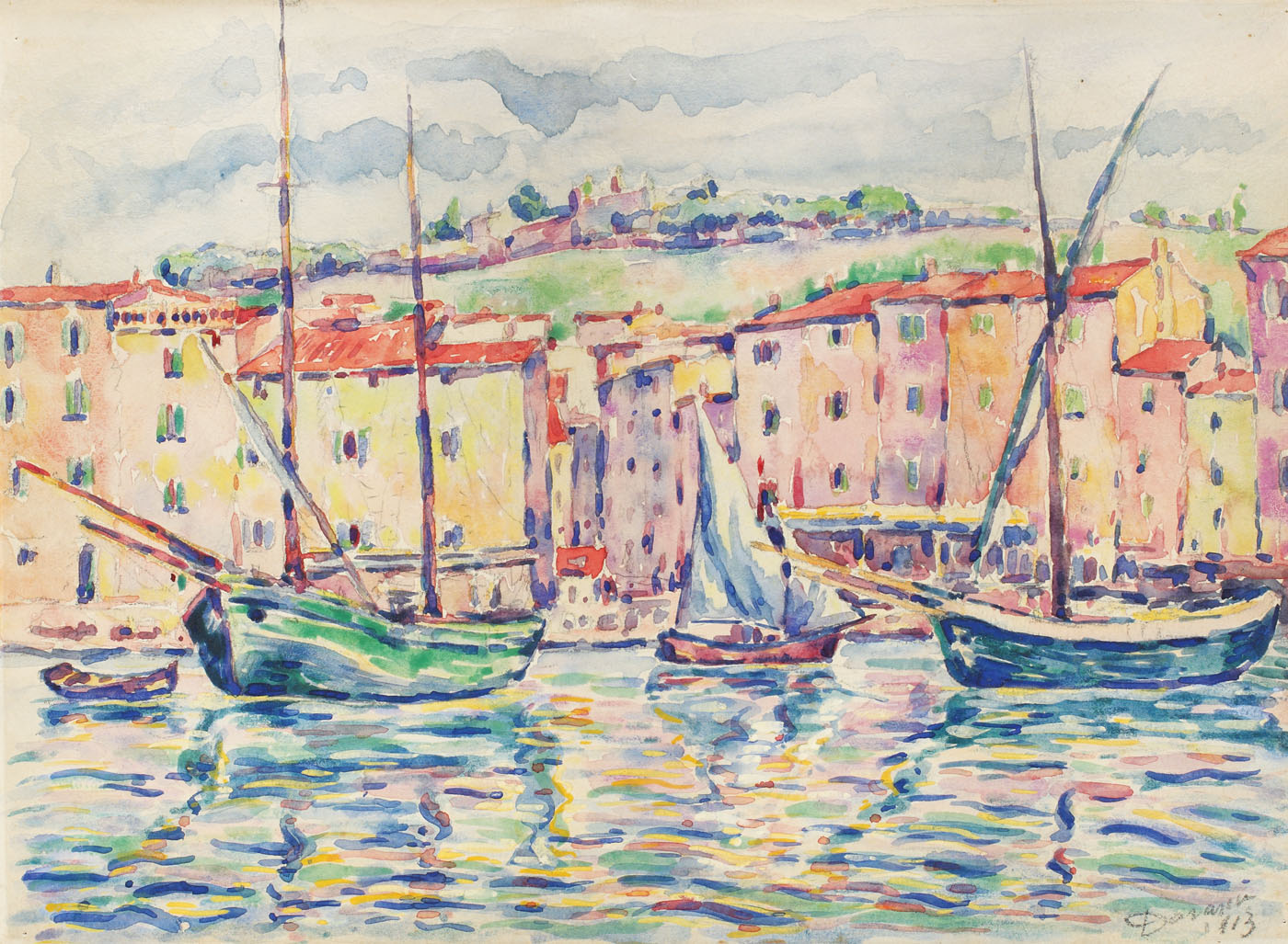 Dărăscu a preferat studiul după natură normelor academice, motiv pentru care a călătorit în luminosul sud al Franței, unde avea să lucreze pentru o perioadă, la Saint Tropez (1908 - 1911). Era perioada în care Dărăscu se familiariza cu contrastului simultan optic, practicat de neoimpresioniști. Urmând pașii propuși de Signac şi Seurat, a tehnicii divizioniste, Dărăscu avea "exploateze" tehnica în realizarea a numeroase acuarele cu motive acvatice și explozie cromatică. Deformarea subiectivă dublată de violența cromatică, ecou al plasticii matissiene, cât și reducerea paletei la roşu, galben, albastru şi verde, ce aveau să redea, prin juxtapunere, armonii cromatice de mare subtilitate, răspund ulterior de trecerea artistului către ulei.