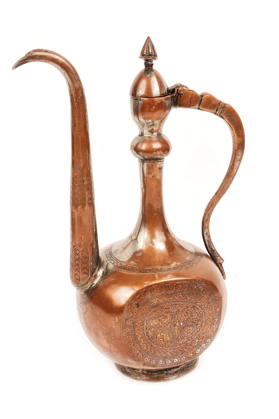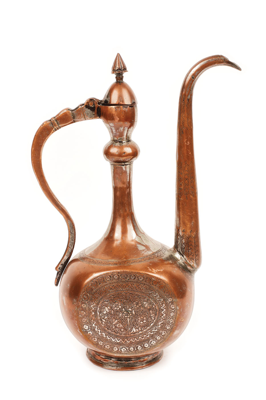 130. Ibric din cupru, decorat cu motive orientale tradiționale, Persia, început de sec. XX