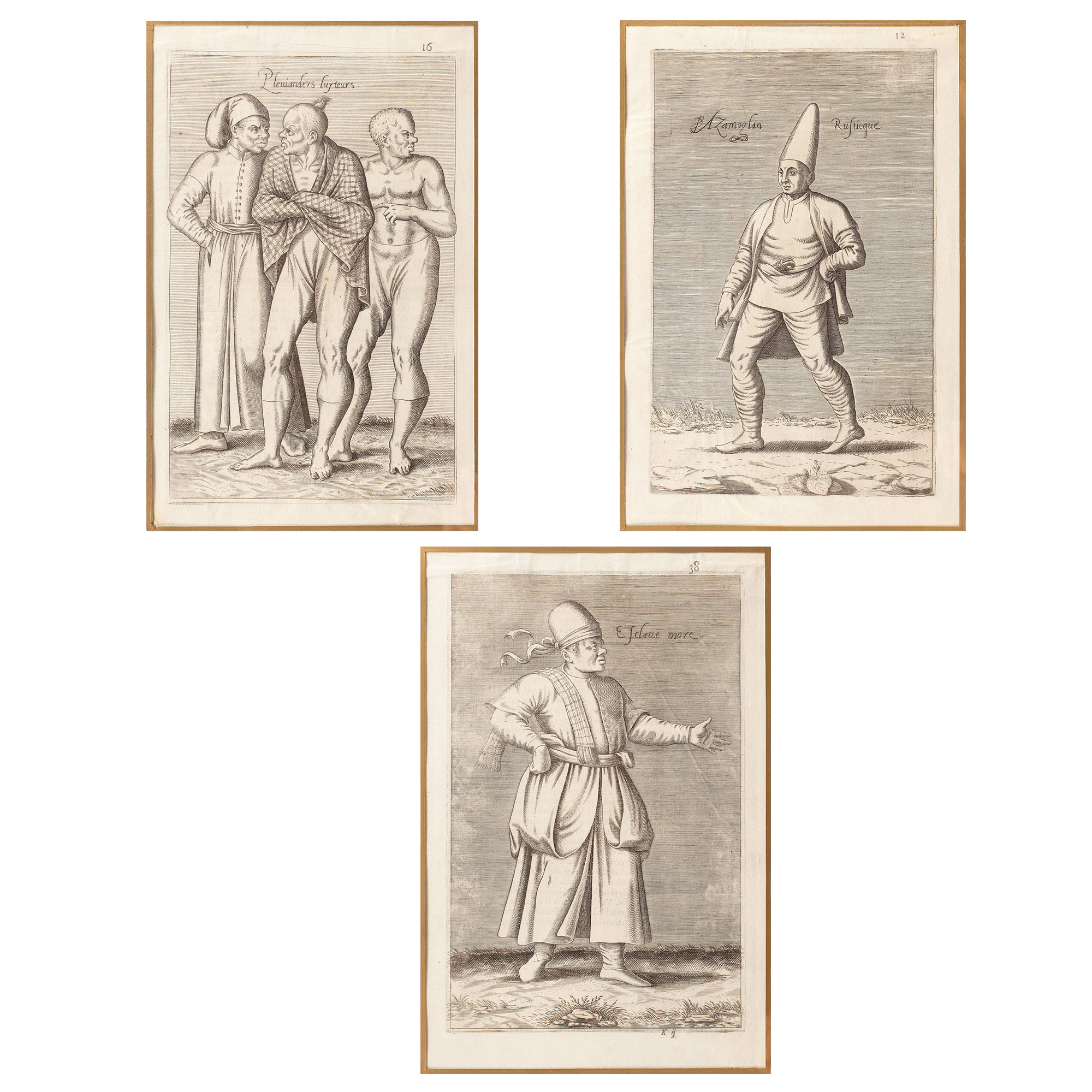 91. Lot format din trei gravuri din mapa "Les navigations, pérégrinations et voyages faicts en la Turquie", sec. XIX